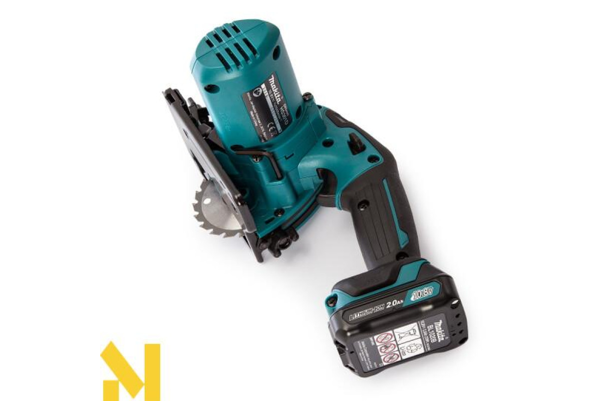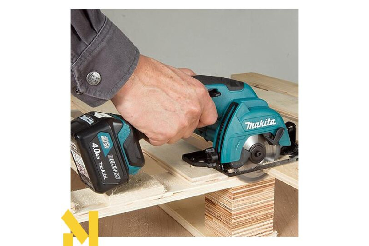 Дискова пилка на акумуляторі Makita HS301DWAE – столярний інструмент компактного розміру. Розпилювання як м'якої, так і твердої деревини не складе жодних проблем. Акумуляторна батарея потужністю 10,8 вольт живить витривалий двигун.