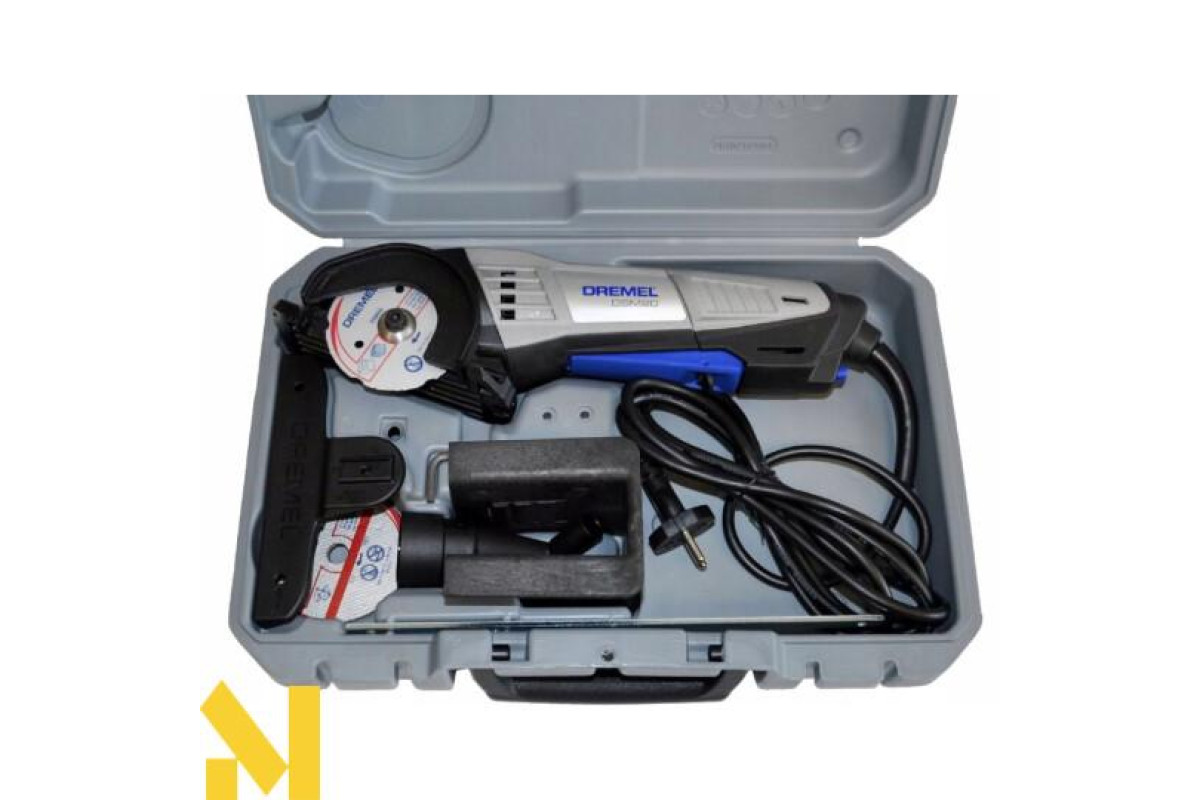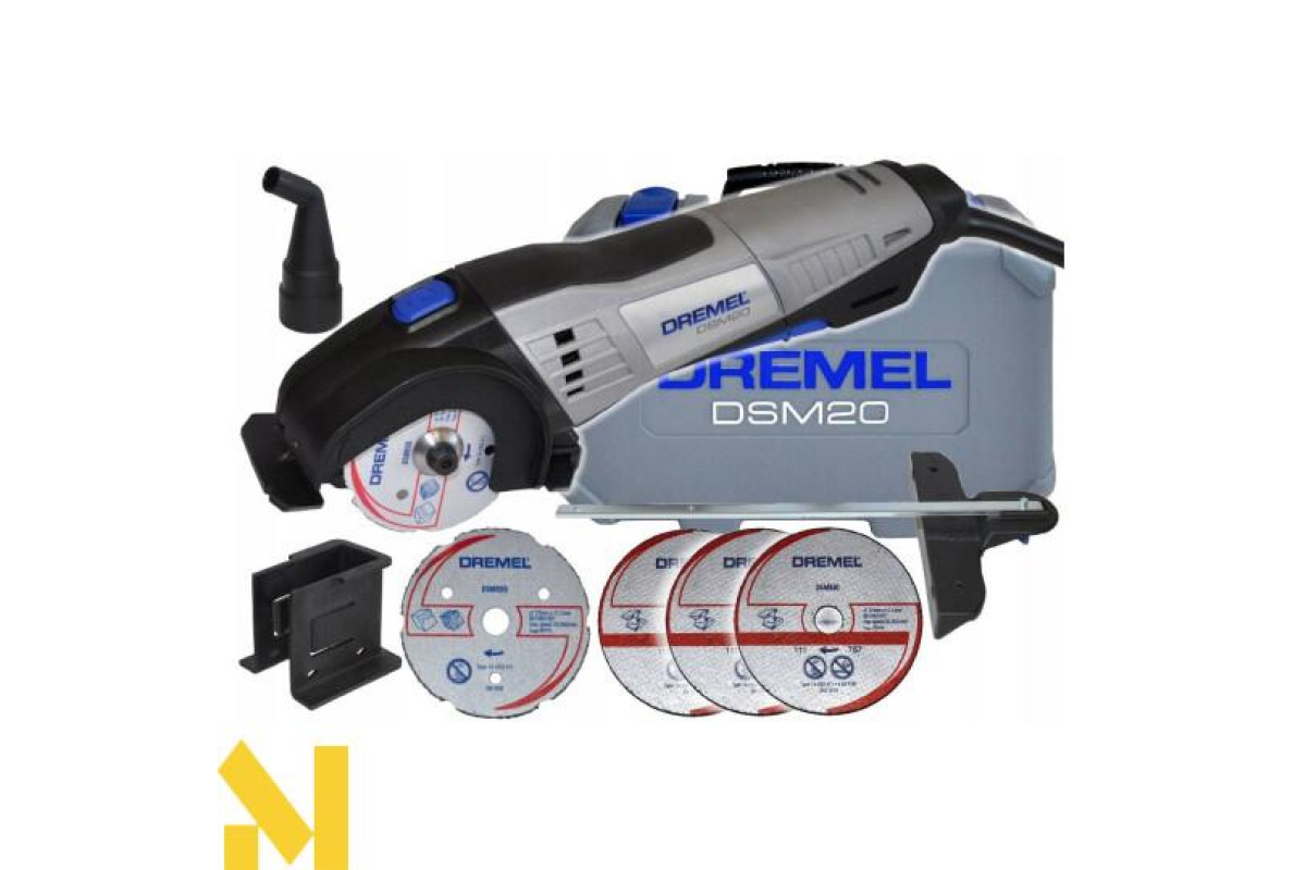 Компактна пила DREMEL DSM20 (DSM20-3/4) володіє невеликими габаритами та має ідеальну видимість лінії пропилу. Вона стане в пригоді у господарстві, під час будівельних та ремонтних робіт. Ріжучи елементом виступають абразивні диски, які здатні досить якісно і точно розрізати твердий матеріал. Зокрема їй під силу метал, кераміка, плитка, пластмаса, дерево.