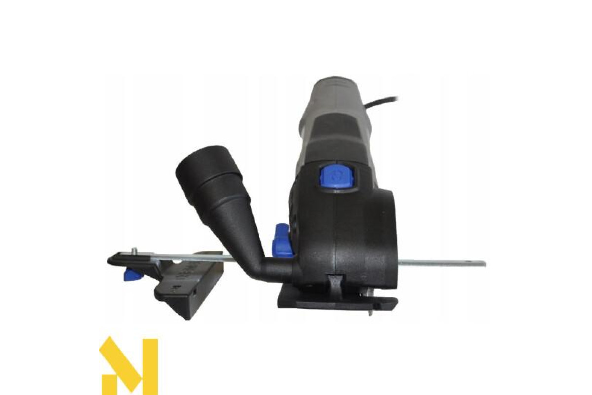 Електроінструмент обладнаний двигуном потужністю 710 Вт, який видає до 17000 оборотів за хвилину. Функціонує апарат від звичайної електромережі. Пристрій здійснює прямий розпил, урізне розпилювання і різання урівень в матеріалах завтовшки 20 міліметрів. Техніка укомплектована трьома дисками, які підходять для роботи з різними поверхнями. Варто зазначити, що наявність направляючої дозволяє пилити паралельно краю заготовки. Крім того напрямна для різання 2х4 дає можливість швидко і точно розрізати брус.
