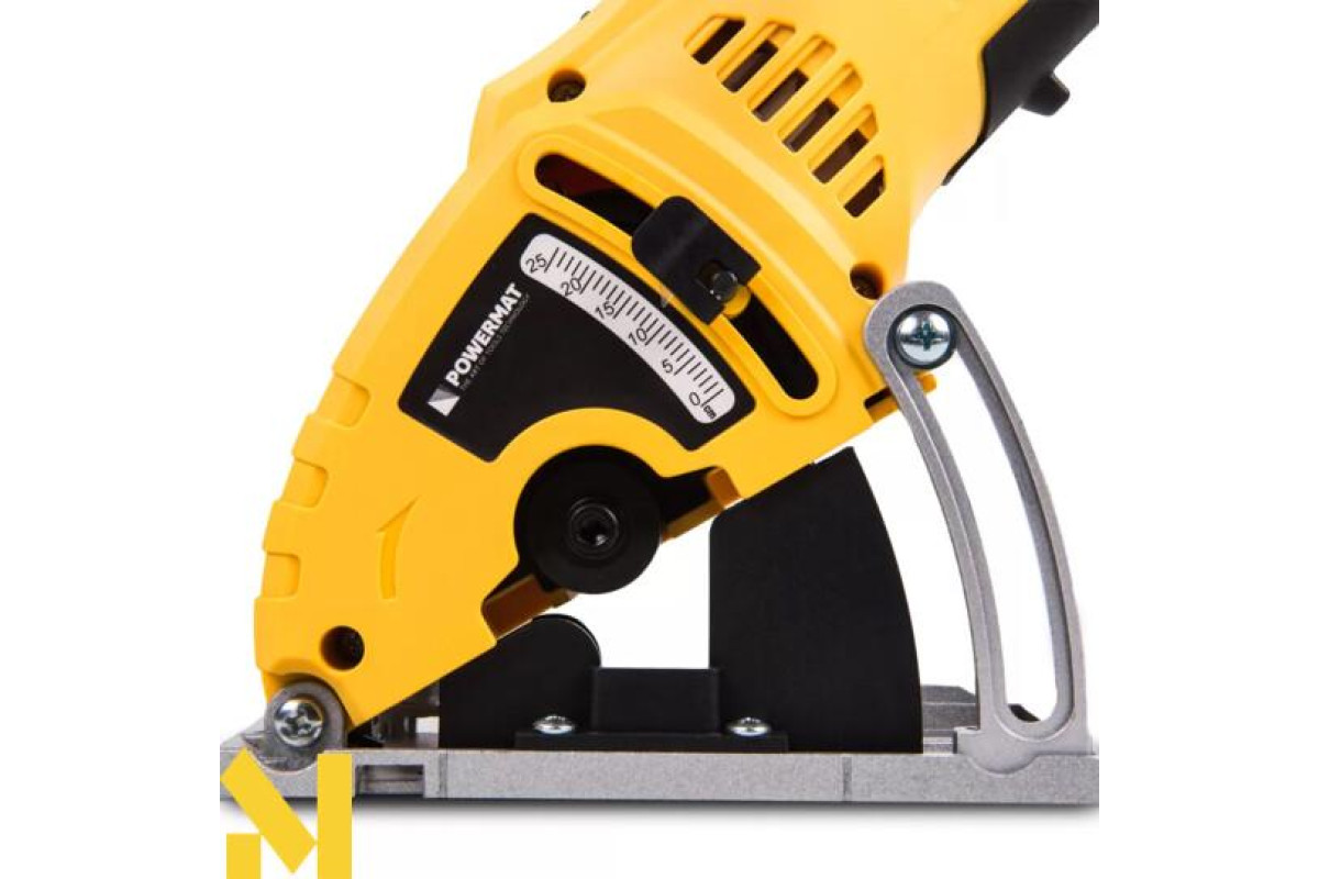 Пила має металеву основу та напрямну нахилу, що робить її надзвичайно міцною та стійкою до пошкоджень, а завдяки використанню алюмінієвих сплавів - ще й надзвичайно легкою. Пила оснащена обмежувачем глибини, який регулюється від 0 до 25 мм на основі направляючої та від 0 до 7 см разом з направляючою. Після розблокування запобіжника рівень заглиблення полотна в матеріалі можна легко спостерігати і регулювати вручну, натискаючи на ручку.