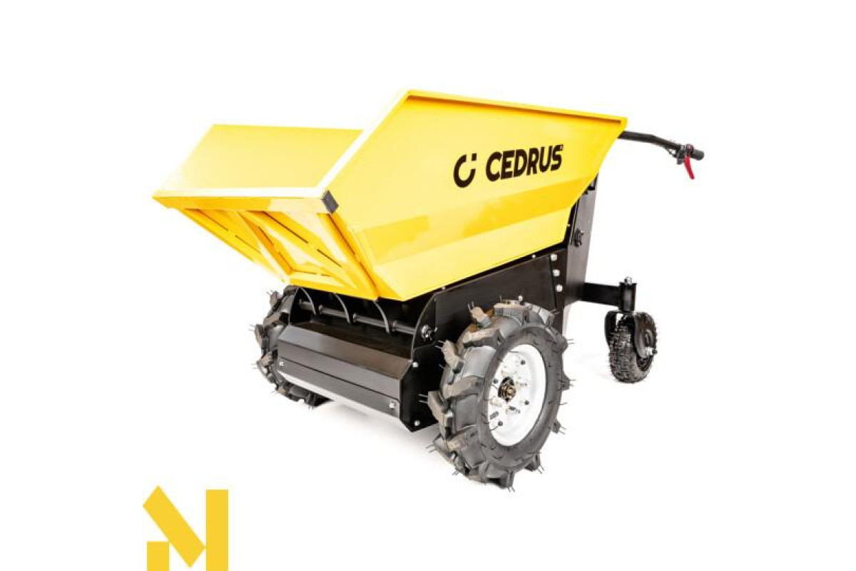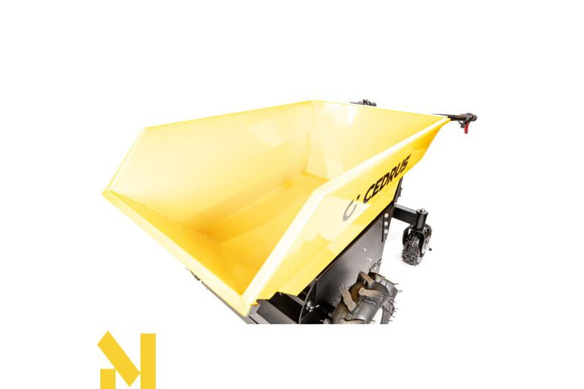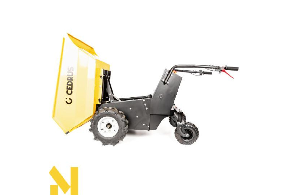 Міні-самоскид Cedrus TA500 можна використовувати для транспортування широкого спектру матеріалів, від піску, землі та інших сипучих матеріалів до цегли, черепиці, дров тощо. Легко, ефективно та безпечно. Шини з високим протектором допомагають пересуватися по складній місцевості.Легке вивантаження за допомогою гідравліки.