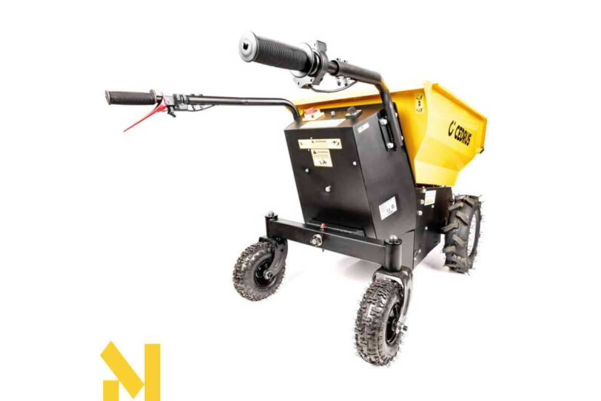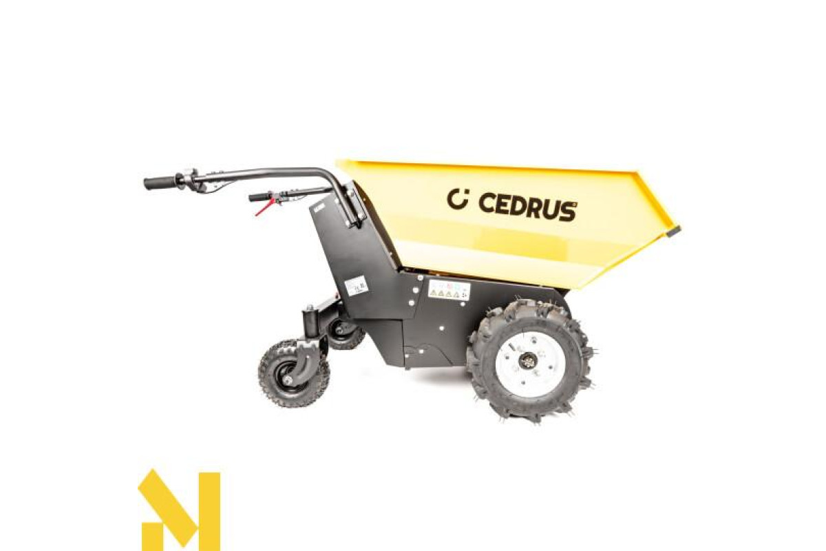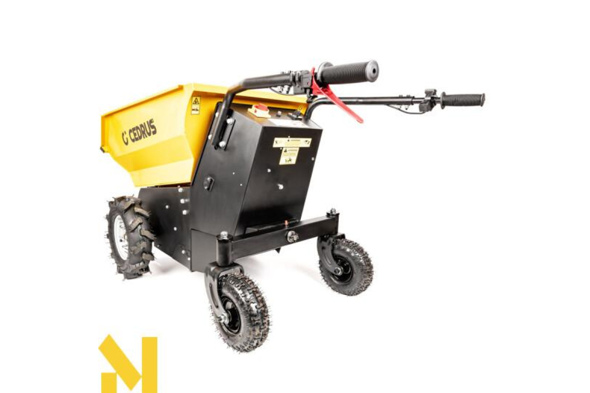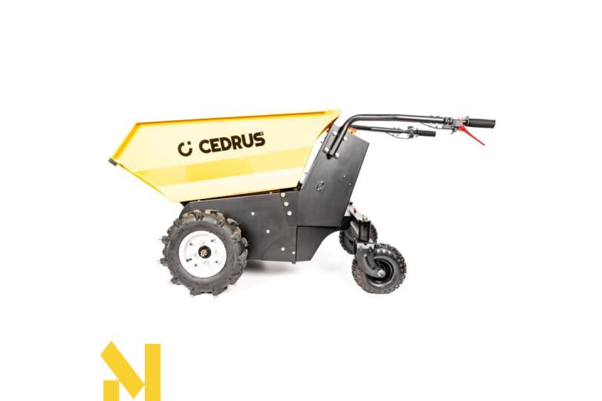 Міні-самоскид Cedrus TA500 можна використовувати для транспортування широкого спектру матеріалів, від піску, землі та інших сипучих матеріалів до цегли, черепиці, дров тощо. Легко, ефективно та безпечно. Шини з високим протектором допомагають пересуватися по складній місцевості.Легке вивантаження за допомогою гідравліки.