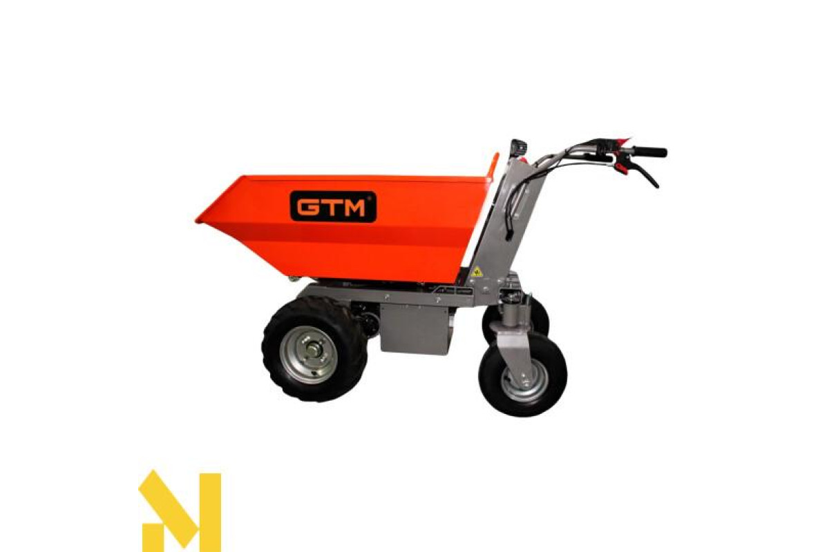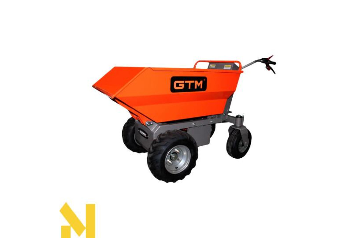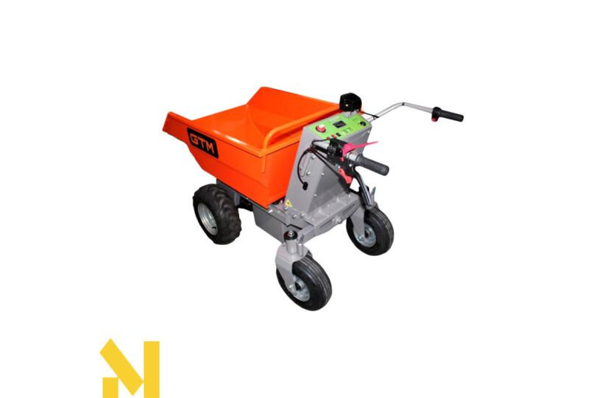 GTM E50M/32A - акумуляторний міні-транспортер з максимальною вантажопідйомністю 500 кг, призначений для виконання завдань пов'язаних із транспортуванням землі, гравію, каміння, сміття та багатьох інших різних матеріалів та вантажів. Це робить його ідеальним помічником на будь-якому будівельному майданчику, у лісовому та сільському господарстві, а також для озеленення. Дана модель працює від акумулятора 48 ємністю 32 А * год і переміщається за допомогою 4 коліс.