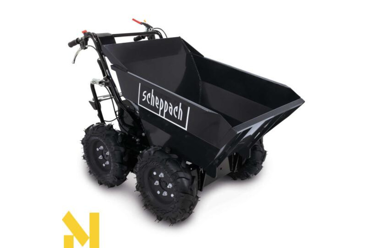 Самоскид Scheppach RD300-BE – ідеальний інструмент для будівництва, лісового господарства, сільського господарства, садівництва та ландшафтного дизайну. Він може легко транспортувати ґрунт, гравій, каміння, щебінь та багато іншого. Завдяки надувним позашляховим шинам та повному приводу, RD300-BE забезпечує достатнє зчеплення навіть на нерівній, складній місцевості, слизьких, гладких або багнистих поверхнях. Напрямок руху, з трьома передачами вперед та однією передачею назад, зручно контролюється за допомогою ручки.