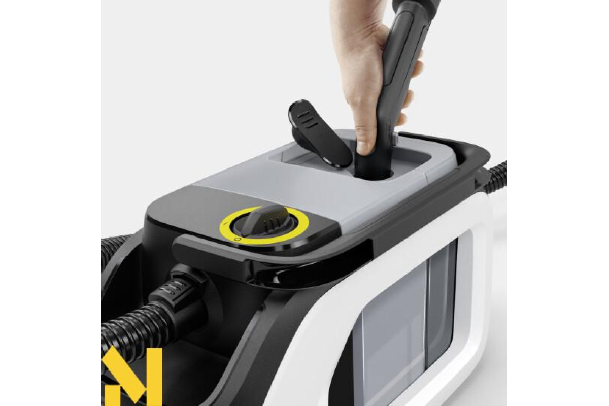 Миючий пилосос Kärcher SE 3 Compact Home поєднує компактний дизайн і потужну технологію глибокого очищення, що дозволяє легко справлятися з забрудненнями на текстильних поверхнях, таких як оббивка меблів, доріжки та невеликі килими. Завдяки компактним розмірам, пилосос не тільки простий у користуванні, але й займає мінімум місця при зберіганні, що дозволяє швидко підготувати його до роботи навіть у разі несподіваних забруднень. Довгий і гнучкий всмоктувальний шланг із вбудованою трубкою для подачі миючого засобу забезпечує зручне очищення важкодоступних місць, а довгий кабель надає повну свободу руху під час прибирання. Практичні аксесуари зберігаються безпосередньо на апараті, що дозволяє завжди мати їх під рукою. Система баків «2 в 1» мінімізує контакт із брудом під час роботи, а функція промивання після використання запобігає розмноженню бактерій і появі неприємних запахів. У комплект входять насадки для м'яких меблів, щілин і засіб для чищення.