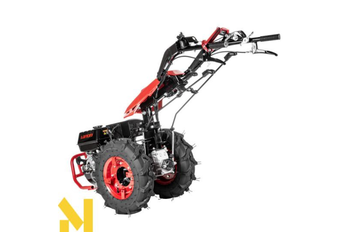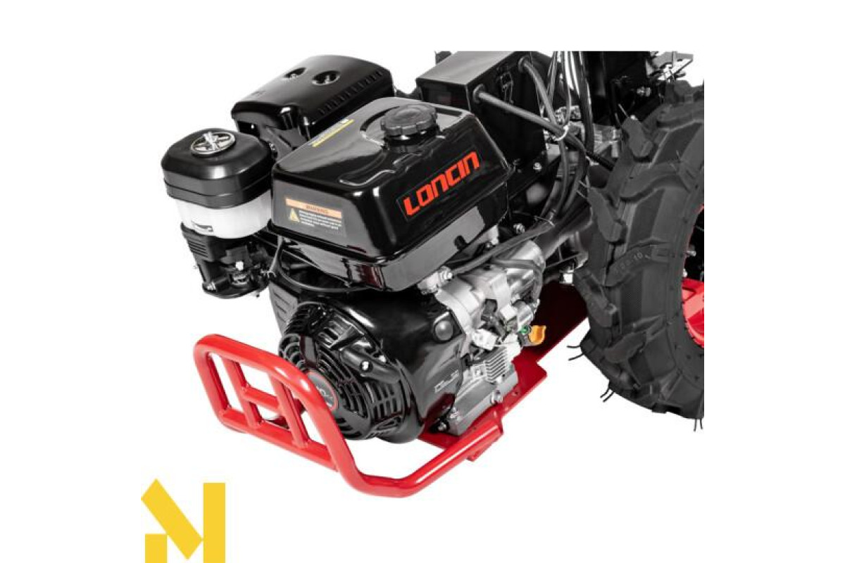 Мотоблок оснащений двигуном Loncin G420F об'ємом 122 см3 з електростартером. Трактор оснащений сухим механічним зчепленням, гідропідсилювачем керма та блокуванням диференціала.