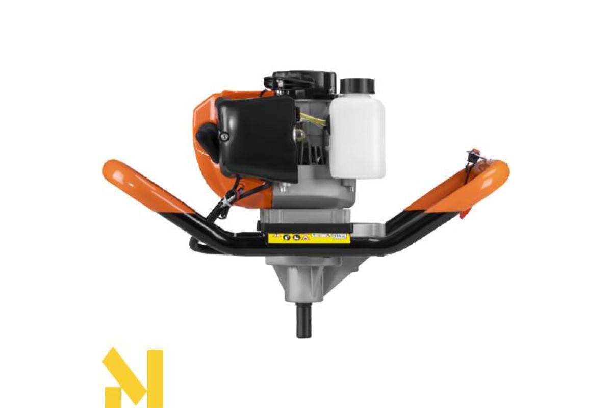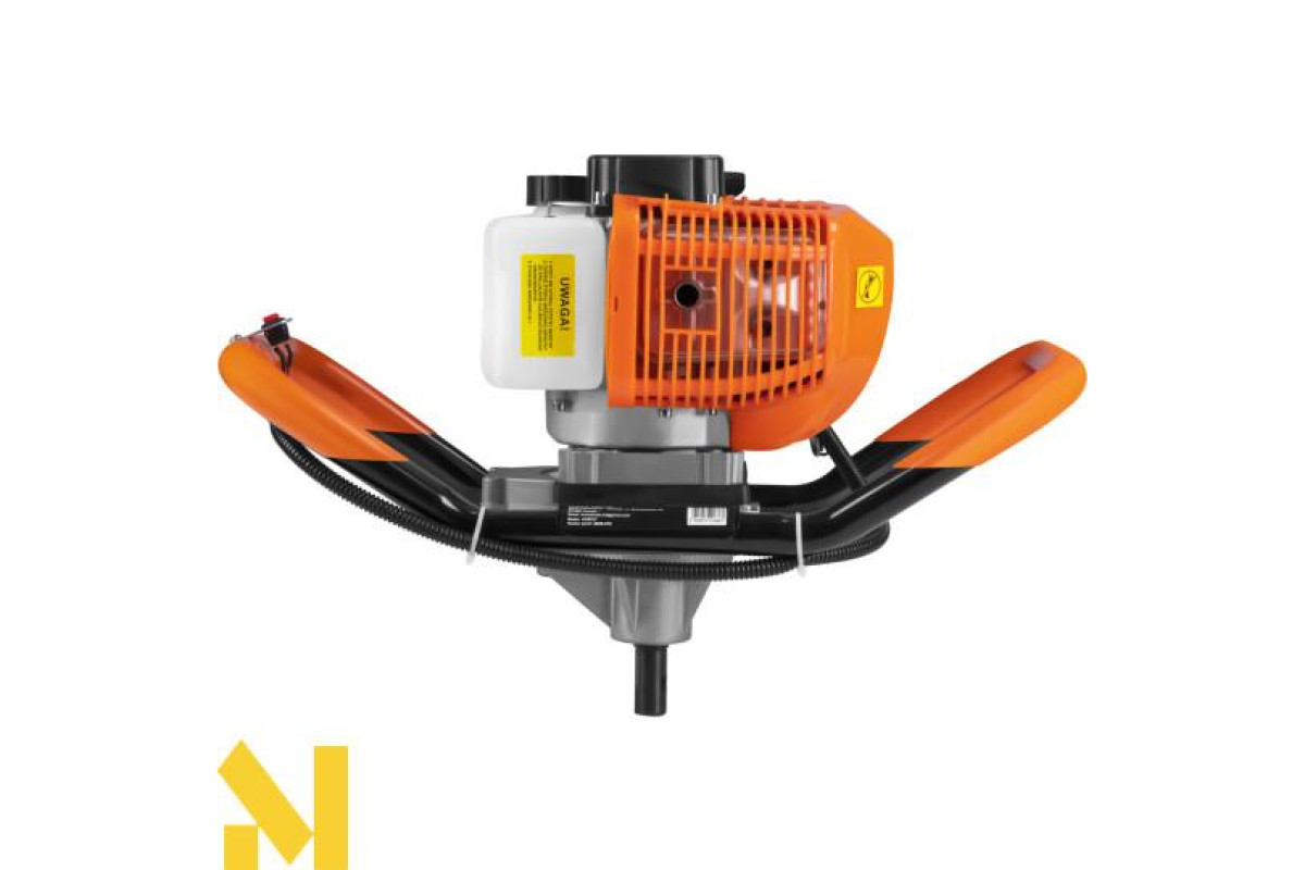 Пристрій характеризується ергономічною конструкцією з подвійними ручками, які гарантують стабільне керування та комфорт експлуатації. Висока потужність двигуна та відповідне передавальне число дозволяють ефективно свердлити, зберігаючи контроль над машиною. Бурова установка KD5217 є ідеальним рішенням як для професіоналів, так і для приватних користувачів, які виконують земляні роботи. З міркувань безпеки ми обладнали пристрій спеціальним вимикачем безпеки, який вимикає пристрій у разі втрати користувачем хвату.