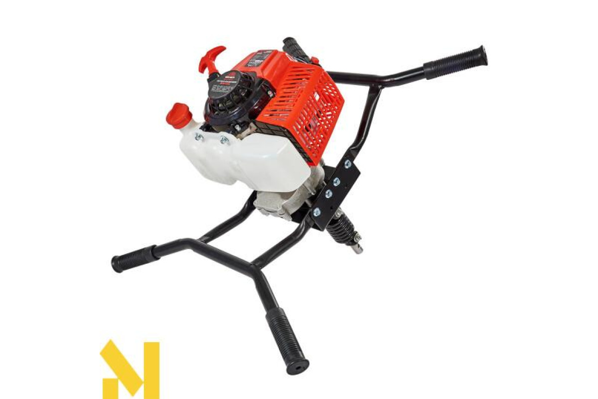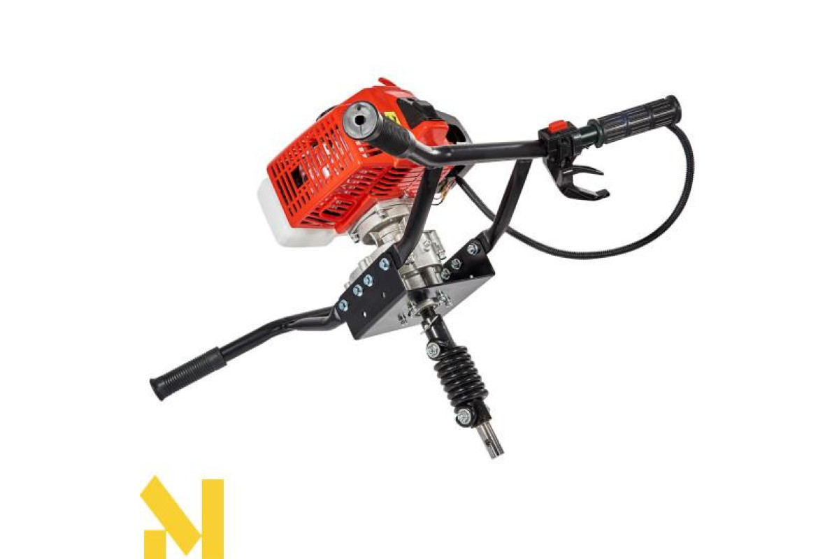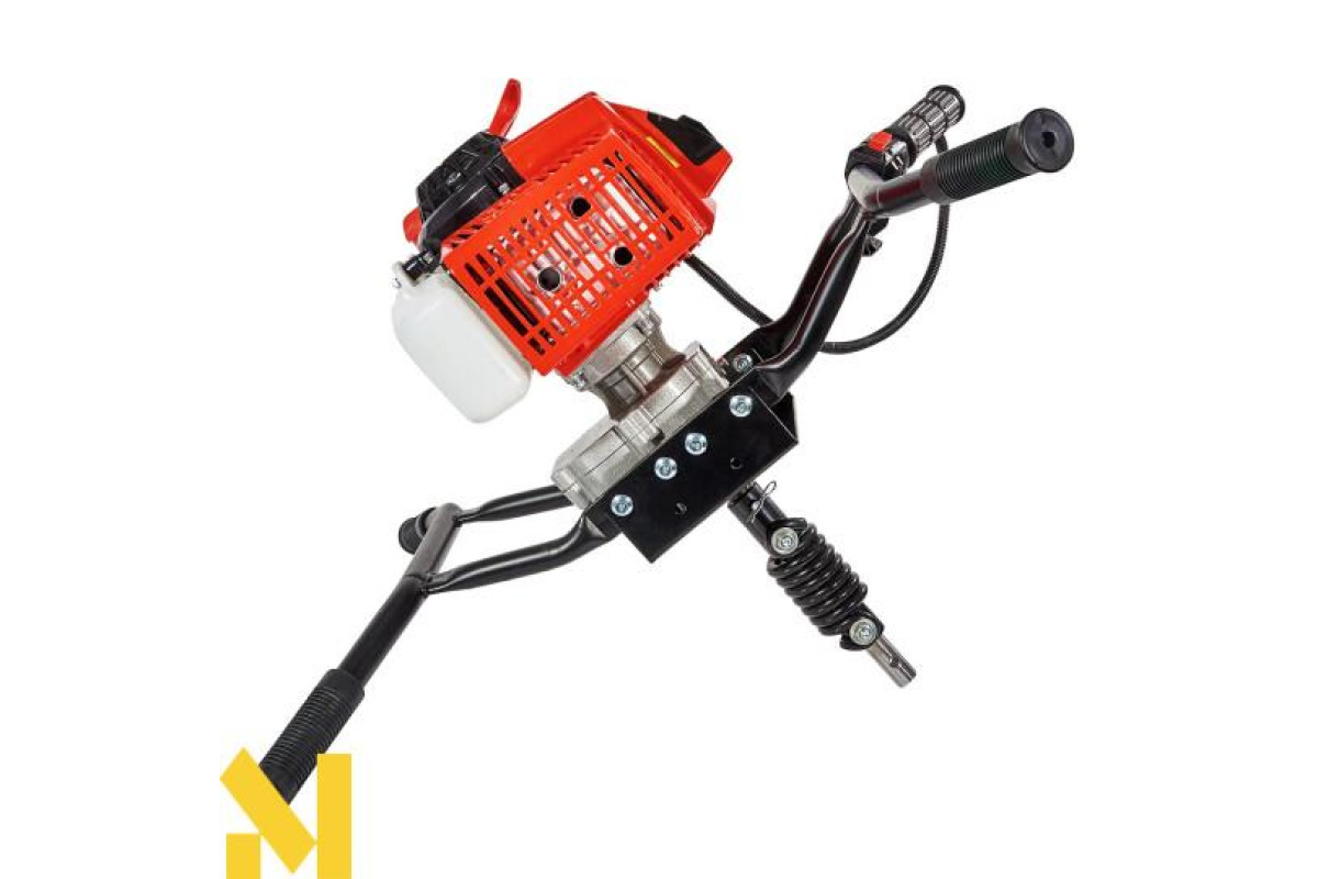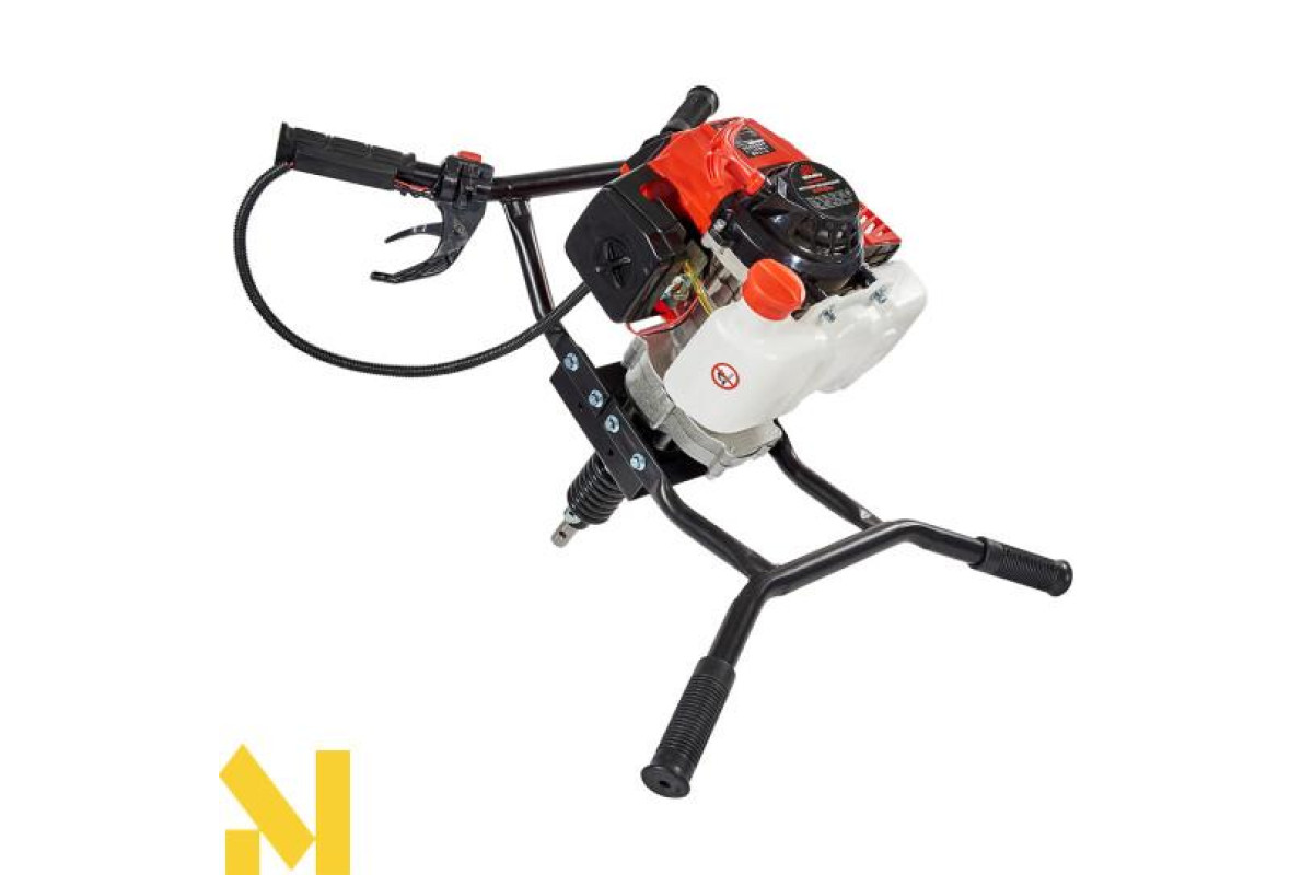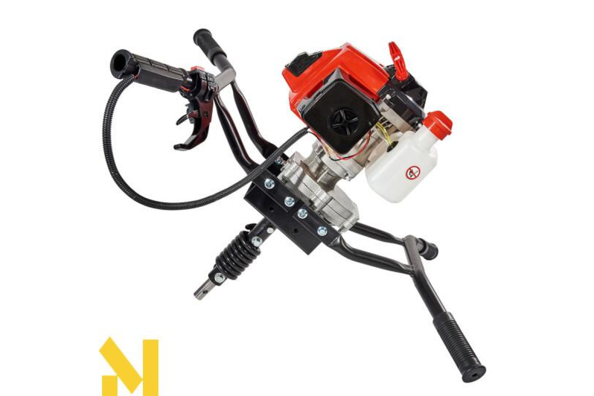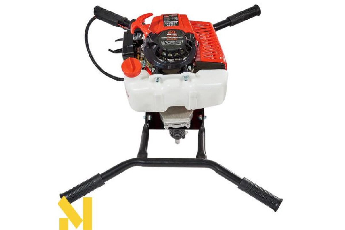 Оснащений бензиновим одноциліндровим двотактним двигуном, ручним стартером, редуктором для зменшення частоти обертів шнека, амортизатором для компенсації зайвих навантажень, а також автоматичною відцентровою муфтою зчеплення.