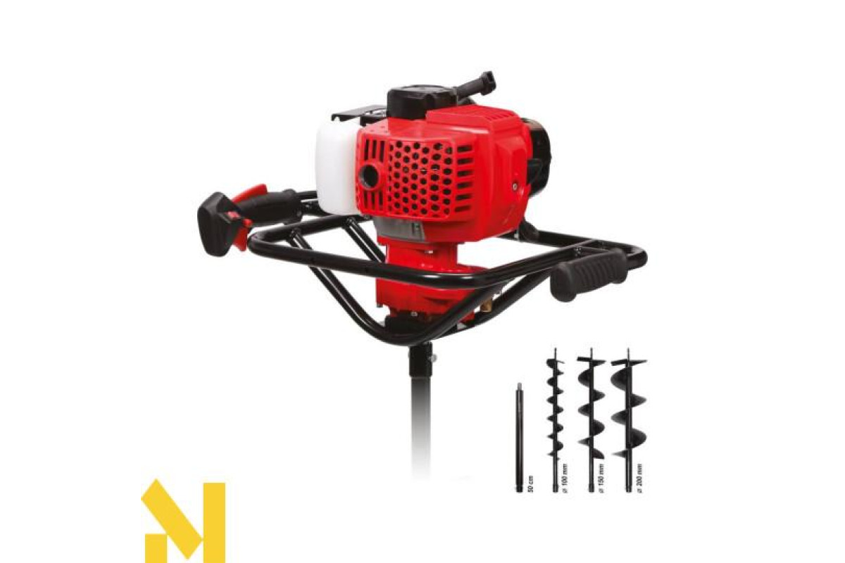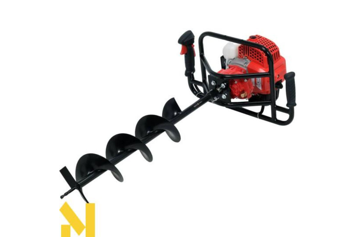 Бензинова бурова установка стане в нагоді в садівництві - для буріння отворів під основи дерев та чагарників, а також у будівельних роботах - для буріння отворів під стовпи огорожі та альтанки. Пристрій для керування одним користувачем.