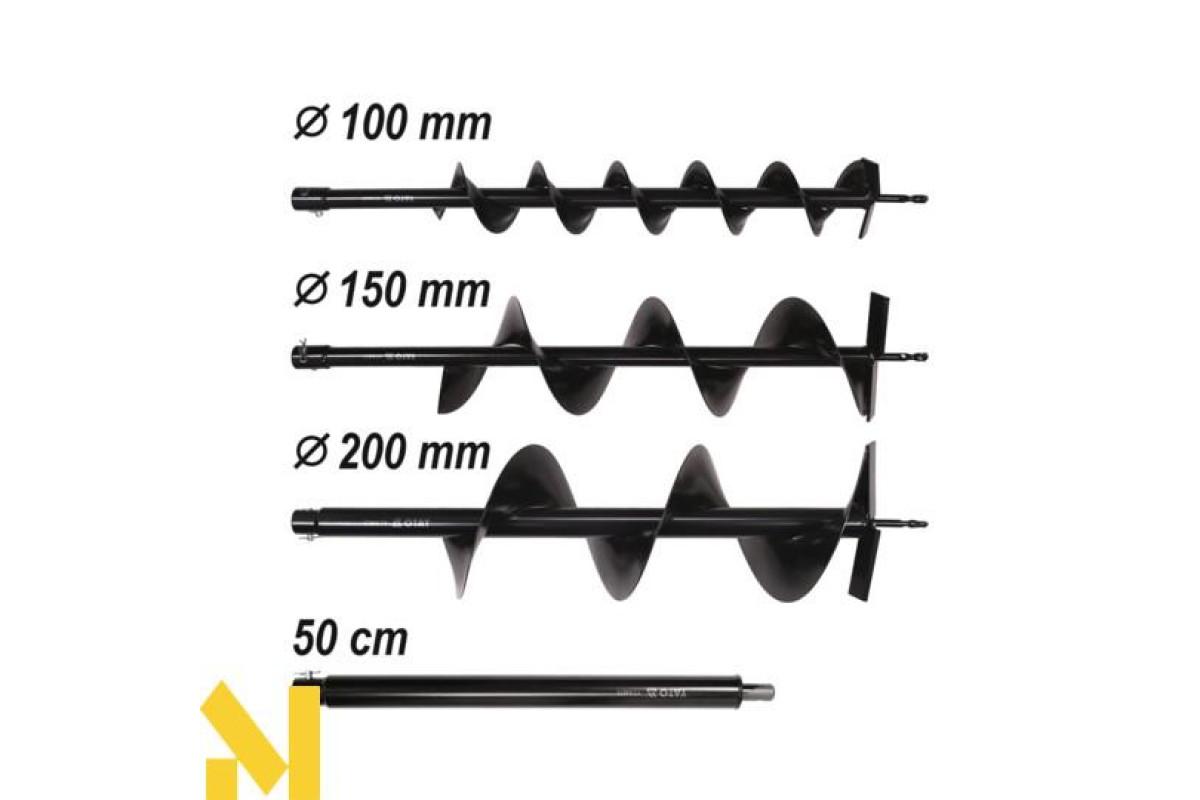 В комплект входять: свердла 100 мм, 150 мм, 200 мм та .
