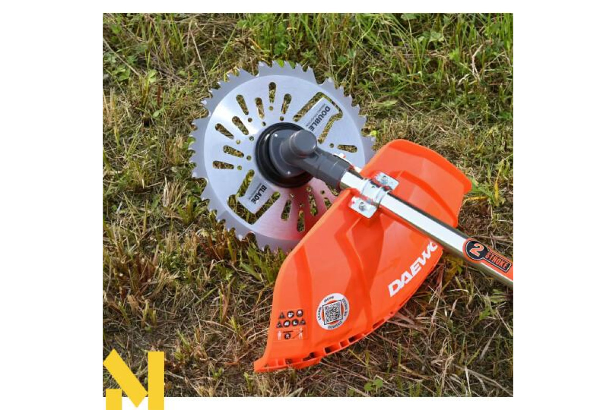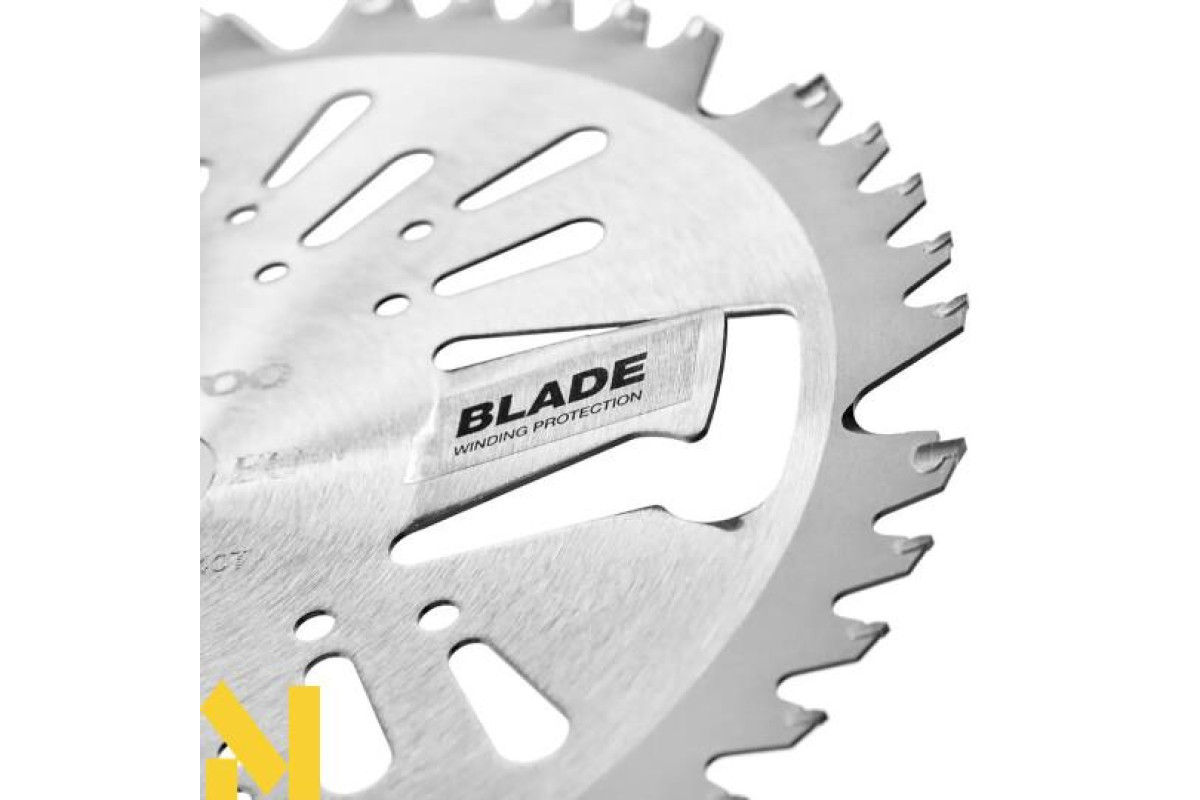 Надзвичайно міцний і ефективний диск, оснащений 40 твердоспеченими зубами, включаючи 8 особливо міцних зубів L-типу, зварених лазером. 2 леза в центрі диска використовуються для скошування обгорткової трави. Спеціальні гострі краї дозволяють ефективно зрізати високу траву.