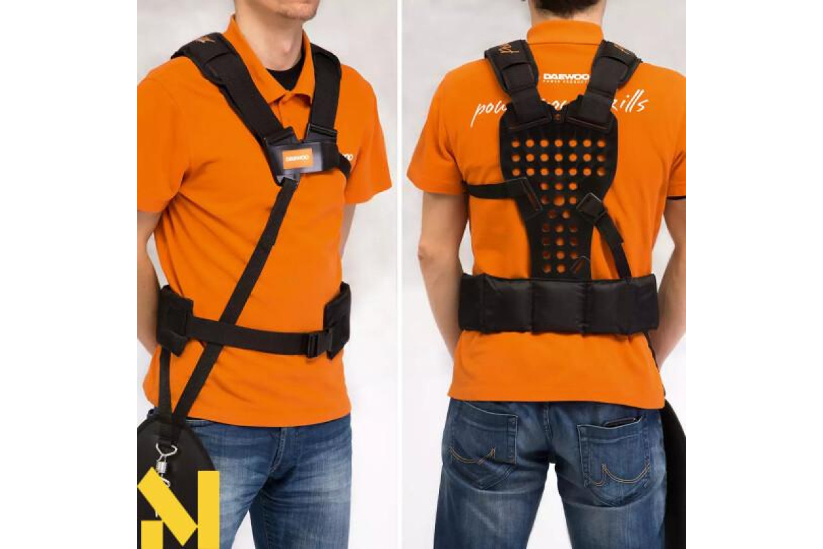 Ремені підвищують комфорт користувача, забезпечуючи оптимальний баланс ваги та кращий контроль над пристроєм. Жорстка задня частина шлеї і м'який ремінь розвантажують хребет. Стегновий щиток захищає користувача від удару двигуна.