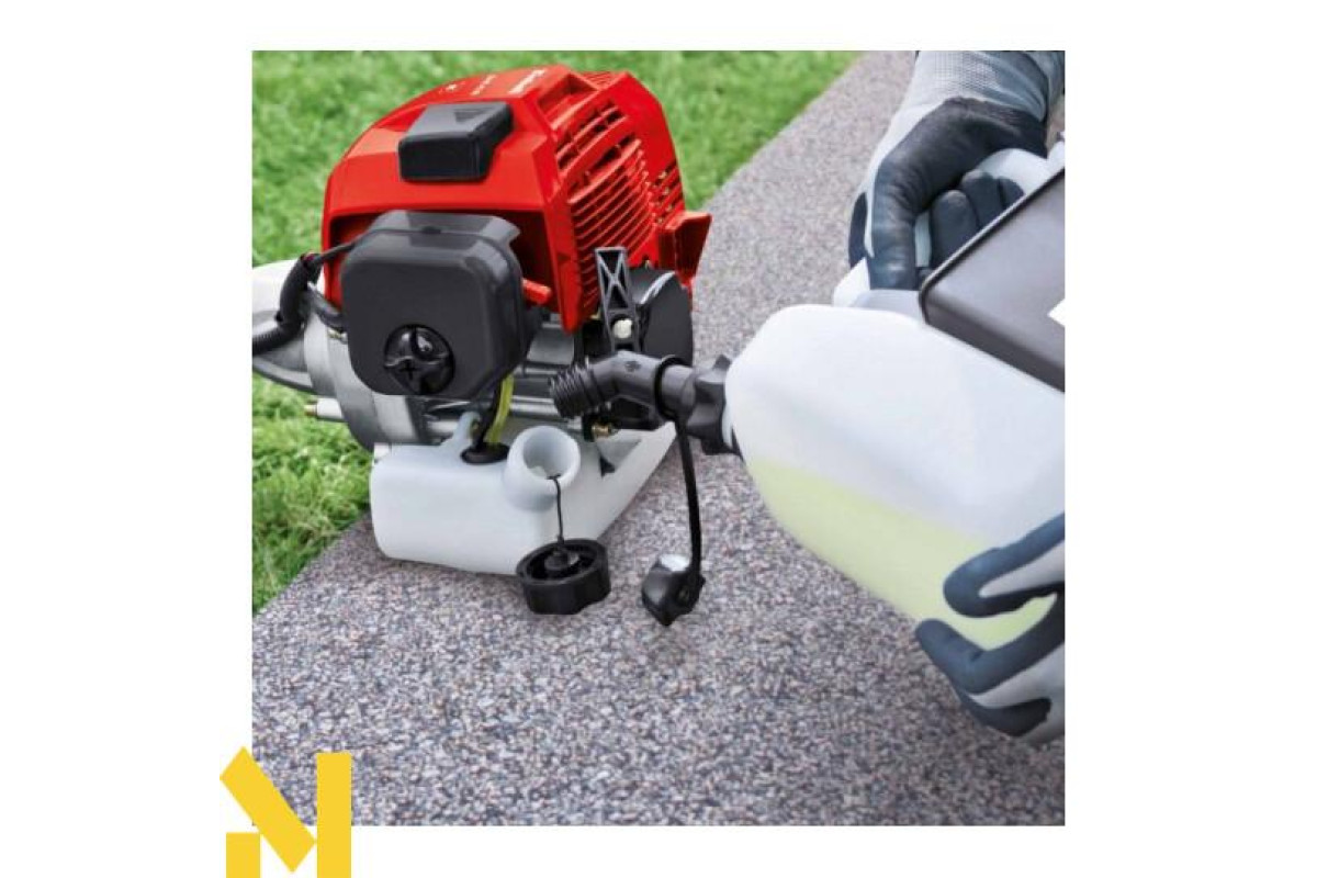 Мотокоса Einhell GH-BC 43 AS - ефективна бензинова мотокоса з потужним 2-тактним бензиновим двигуном з повітряним охолодженням. Як ріжучої системи в бензокоси Einhell GH-BC 43 AS використовується подвійна волосінь товщиною 2,4 мм, що забезпечує косіння трави шириною 40 см за один прохід, або 26-сантиметровий 3-лопатевої ніж. Мотокосою Einhell GH-BC 43 AS легко управляти, так як є зручна велосипедна рукоятка і ремінна оснастка, що полегшує навантаження на руки оператора, переносячи вагу коси Einhell GH-BC 43 AS на спину.