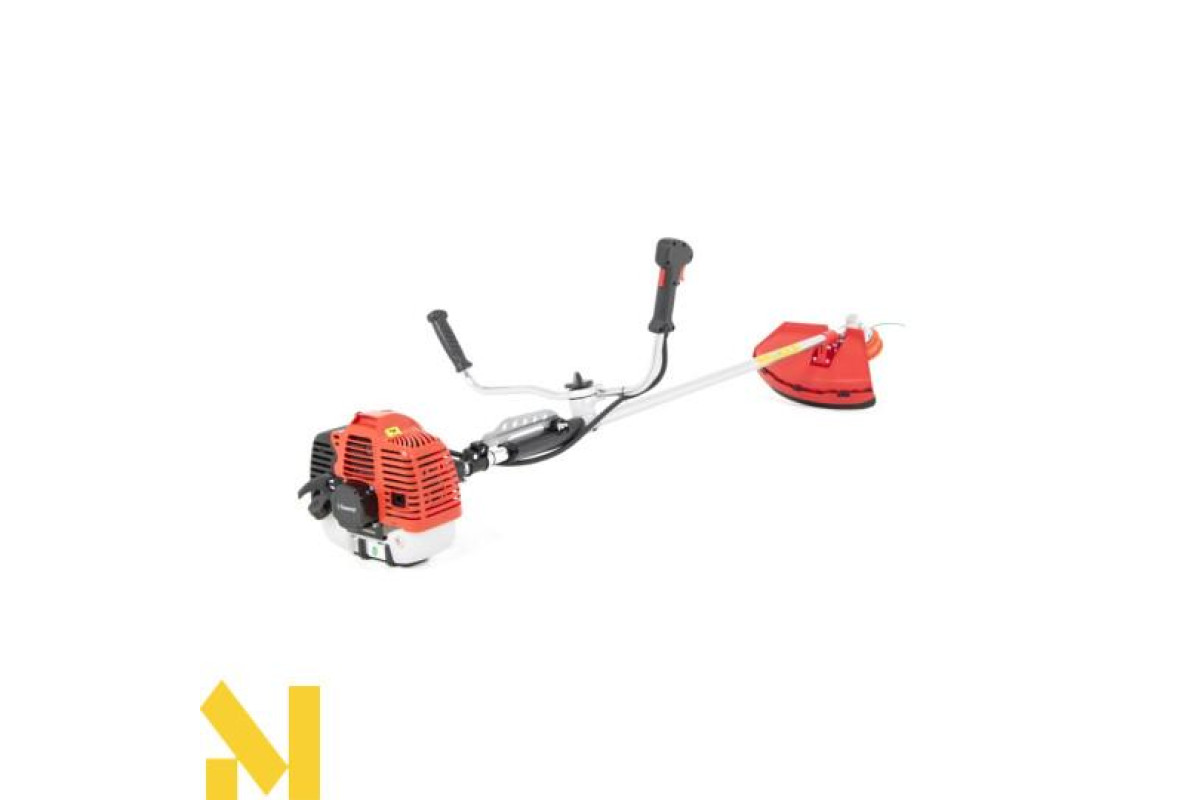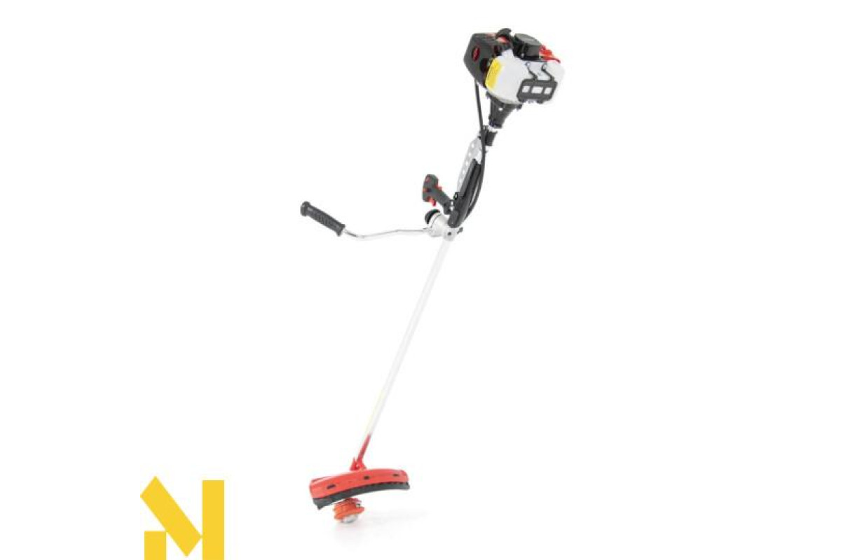 коса має тризубий диск і тримерну головку, що дозволяє використовувати її різноманітно - від підстригання трави до видалення густих кущів. Тримерна головка з волосінню діаметром 2,4 мм ідеально підходить для точних завдань, а тризубий диск впорається з більш густою рослинністю.