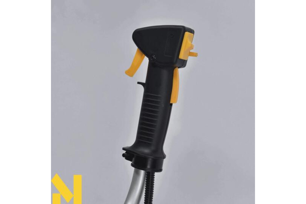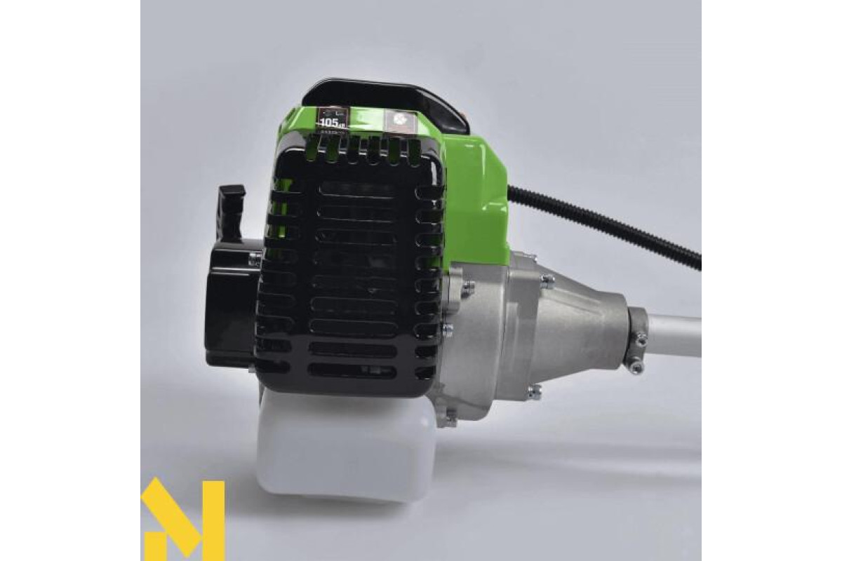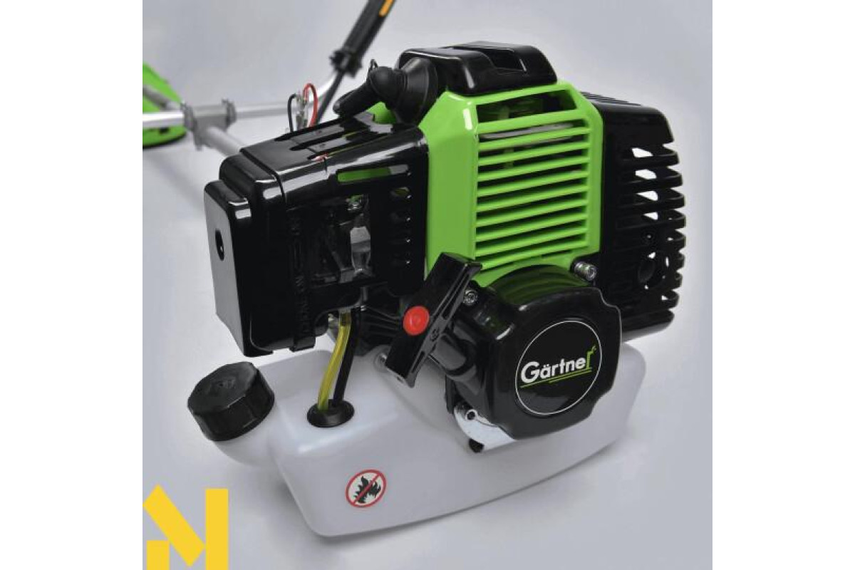Пристрій має двотактний двигун внутрішнього згоряння. За допомогою встановлених на робочу головку ріжучої котушки або ріжучого ножа здійснюється скошування трави.