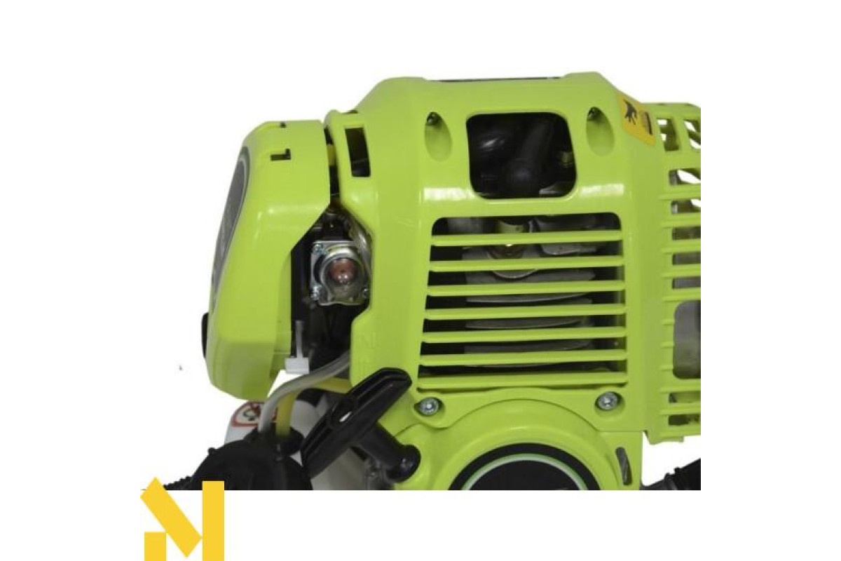 Надійна і економічна мотокоса з 4-тактним бензиновим двигуном. Відрізняється хорошою комплектацією і підвищеною екологічністю (на відміну від двотактних двигунів внутрішнього згоряння чотиритактні мотори дають менш токсичний вихлоп). Виробником позиціонується як продукт середньої цінової категорії, призначений для догляду за садовими / прибудинковими територіями зі складним рельєфом і непростою геометрією. Здатний ефективно працювати в умовах, коли використання колісних газонокосарок неможливо. Завдяки компактним розмірам і відмінною маневреності, ідеально підходить для покосу поблизу стін будівель, парканів, бордюрів, навколо опор і дерев, між чагарниками і т.п. Непогано справляється зі значними обсягами робіт, пристосований для тривалої безперервної експлуатації. Якісний двигун об'ємом 38 куб. см забезпечує чималу потужність 3,8 к.с. (2,8 кВт), при необхідності швидко набирає обертів і видає пристойний крутний момент. Завдяки економічності цієї силової установки, невеликого бензобака ємністю 0,65 л досить для виконання значного обсягу роботи без дозаправки. Комплектується трмерною головкою з напівавтоматичною подачею корду, трилопатевим сталевим ножем 3Т і дисковим ножем-фрезером 40Т для зрізання жорсткої чагарникової порослі та навіть молодих дерев. Збалансована конструкція, низький рівень вібрації і ранцевий ремінь роблять роботу максимально комфортною.