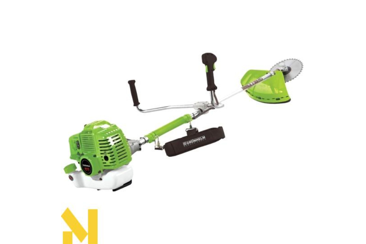 Надійна і проста у використанні газонокосарка Grunhelm GR-53 вигідно відрізняється від інших моделей високою маневреністю - з її допомогою користувач легко впорається з травою там, де інші варіанти будуть безсилі. Двотактний двигун потужністю в 2,8 кВт забезпечений системою повітряного охолодження, що дозволяє йому робити 6000 обертів на хвилину, не перегріваючись при цьому. Паливо агрегат витрачає економно, тому навіть при паливному баку на один літр зможе довго працювати без дозаправки. Окремий плюс моделі - можливість регулювання висоти ручки, завдяки чому ви легко зможете налаштувати газонокосарку під свій зріст. Для більшої зручності використання в комплекті йде плечовий ремінь і рукоятка велосипедного типу. Для зрізання трави використовується не тільки волосінь діаметром в 1,3 мм, але і спеціальний ніж.