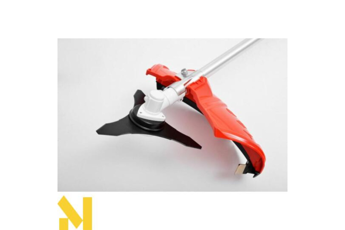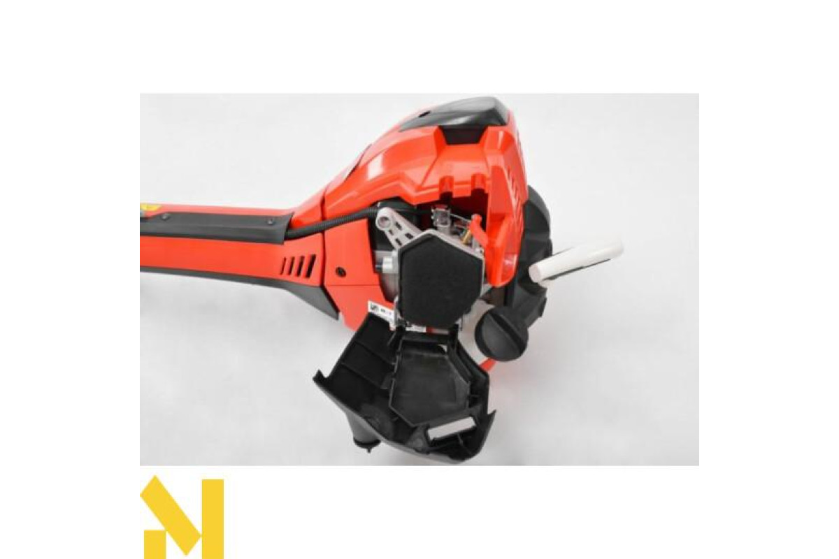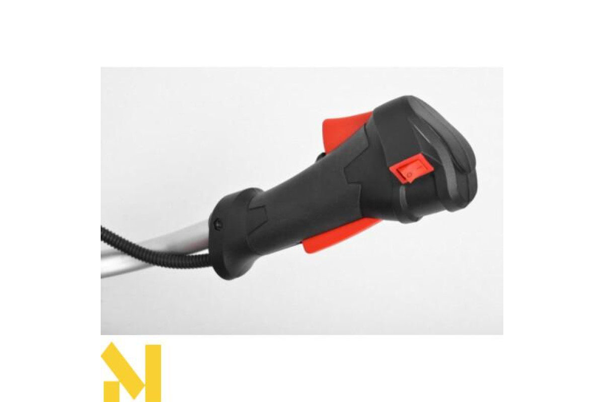 Масивне рульове колесо з ергономічними ручками ідеально поміщається на долоні і дозволяє точно орієнтувати пристрій в поле. Ціле відмінно амортизовано, ручку можна легко і швидко викрутити, щоб встановити її під оптимальним кутом в залежності від уподобань користувача. Діапазон обрізки становить 25,5/43 см в залежності від використовуваного інструменту, ніж автоматично підлаштовує лінію під відповідну довжину, тому при косінні немає необхідності вручну подовжувати лінію. Коса забезпечена погонами, які доповнені товстим шаром м'якої губки. Центр тяжкості коси був правильно збалансований, переносячи більшу частину ваги на підвіску і рівномірно розподіляючи вагу. До складу набору входить високоякісний металевий тристоронній ніж, тріммерная головка і базові інструменти для заміни ріжучих насадок. Пристрій відрізняється сучасної, компактної і міцною конструкцією з матеріалів найвищої якості. Надійна коса для вимогливих користувачів.