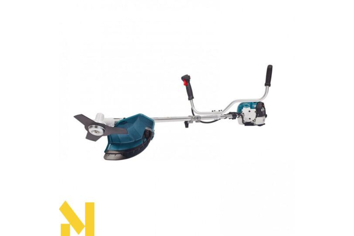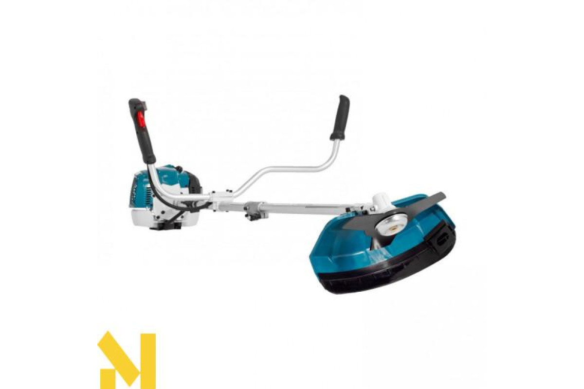 Потужний двигун у даній моделі бензокоси дозволяє використовувати металевий ніж, який входить в комплект поставки. Ніж трилопатевий металевий і розрахований для косіння більш щільних стебел чагарників.