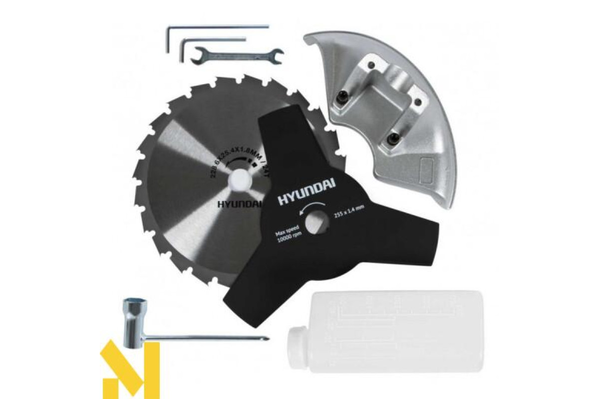 Два варіанти оснащення дозволять ефективно виконувати масштабні завдання без перевантаження мотора і надмірного зносу компонентів. Трилопатевий диск розрахований на зріз очерету, здерев'янілого бур'яну, молодняка чагарників. Шпуля з кордом розрахована на догляд за газонним покриттям і стрижку м'якої рослинності.
