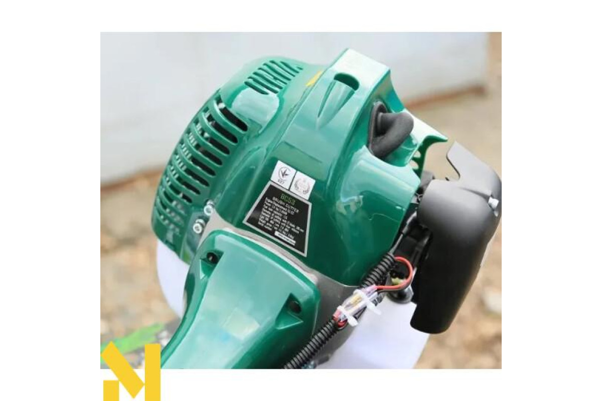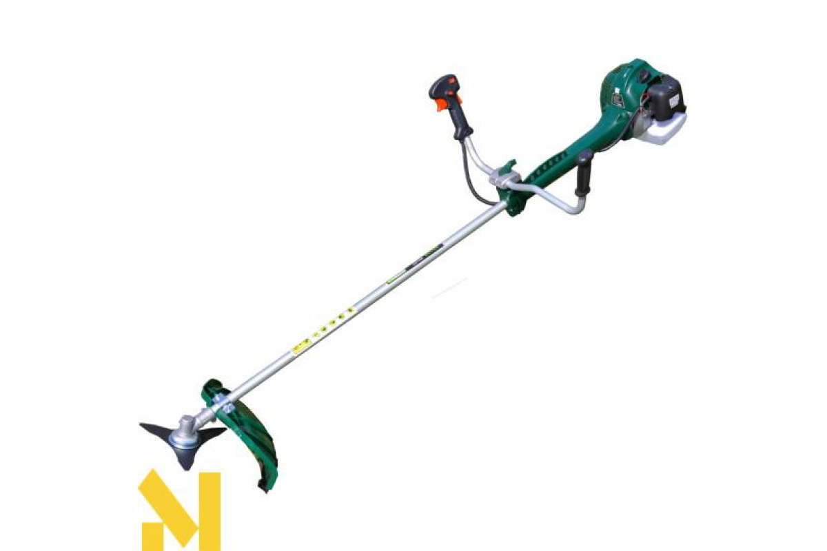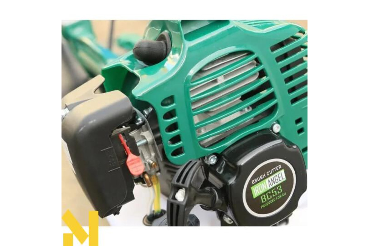 Мотокоса Iron Angel BC53 функціональна садова техніка для покосу трав'янистих рослин на важкодоступних ділянках, обробки крайок газонів, зон уздовж огорож, навколо перешкод, а також просторих галявин. Мобільний агрегат дозволить оперативно вирішити питання небажаної рослинності на територіях будь-якої площі, надати доглянутий вигляд рослинного покрову. Двигун легко запускається при знижених температурах і в будь-якому положенні завдяки вдосконаленому стартеру. Активізація коси здійснюється одним несильним ривком витяжного троса. Якісний редуктор з високою тепловіддачею виготовлений з особливого сплаву, стійкого до корозії і механічних пошкоджень. Механізм сприятливо впливає на продуктивність ріжучої гарнітури шляхом ефективної передачі крутного моменту від бензомотора з незначними втратами. Ранцеве оснащення подвійного плечового ременя знімає напругу м'язів працівника при тривалому косінні шляхом розподілу навантаження на весь корпус, забезпечуючи вільне пересування з косильним обладнанням в ході садово-паркових робіт без швидкого стомлення і відчуття тяжкості. Нероз'ємна труба зі сталі підвищує міцність збалансованого інструмента, яким можна обкошувати місцевість з рельєфом різної складності. Захисний кожух затримує вилітаючі відходи зрізу, запобігає травмуванню користувача. У конструкції бензокоси застосоване кермо як у велосипеда, за рахунок чого функціонування комфортне для оператора і дає можливість точно задавати траєкторію руху, контролювати ступінь розмаху. На праву ручку виведені кнопки регулювання.