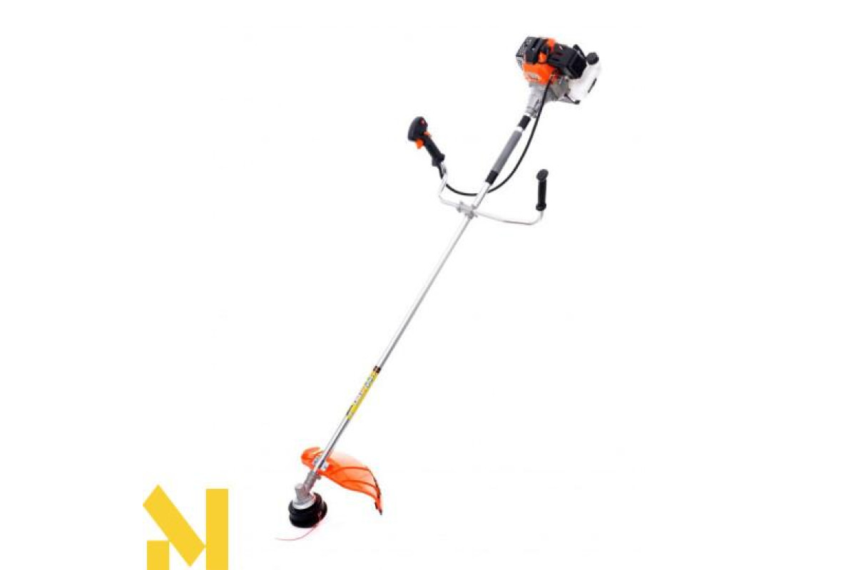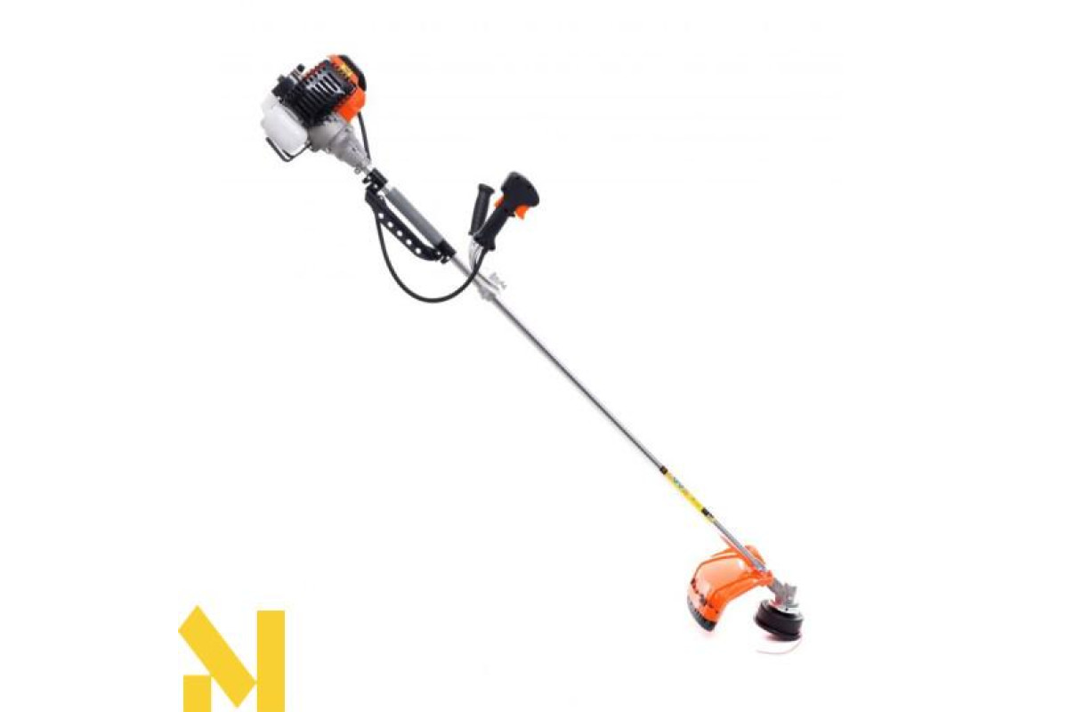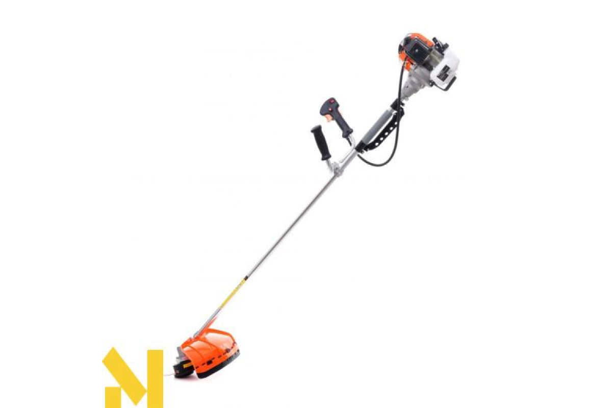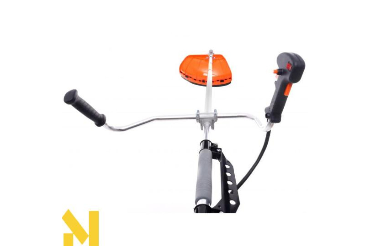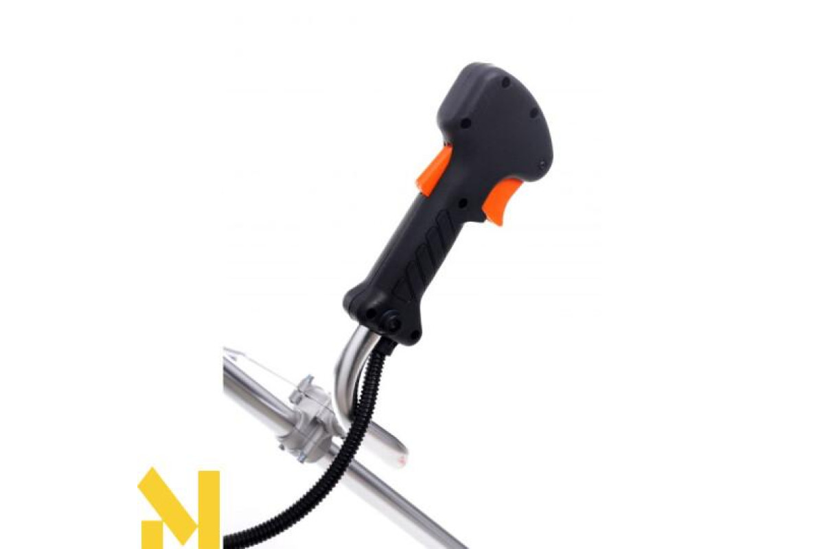 Мотокоса оснащена зручною рукояткою з вбудованим курком управління газом з фіксатором від випадкового натискання, а також перемикачем і функцією блокування обертання.
