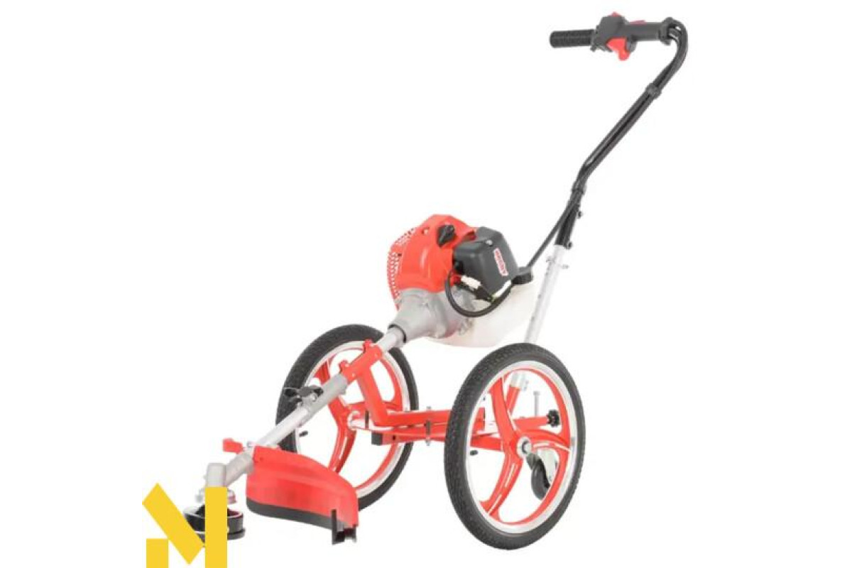 Його можна встановити в трьох положеннях. При звичайному косінні головка тримера знаходиться в центрі машини і може нахилятися вліво або вправо, щоб косити стіни, паркани та інші перешкоди. Більш точне ведення тримерної головки над землею полегшить регулювання заднього допоміжного колеса.