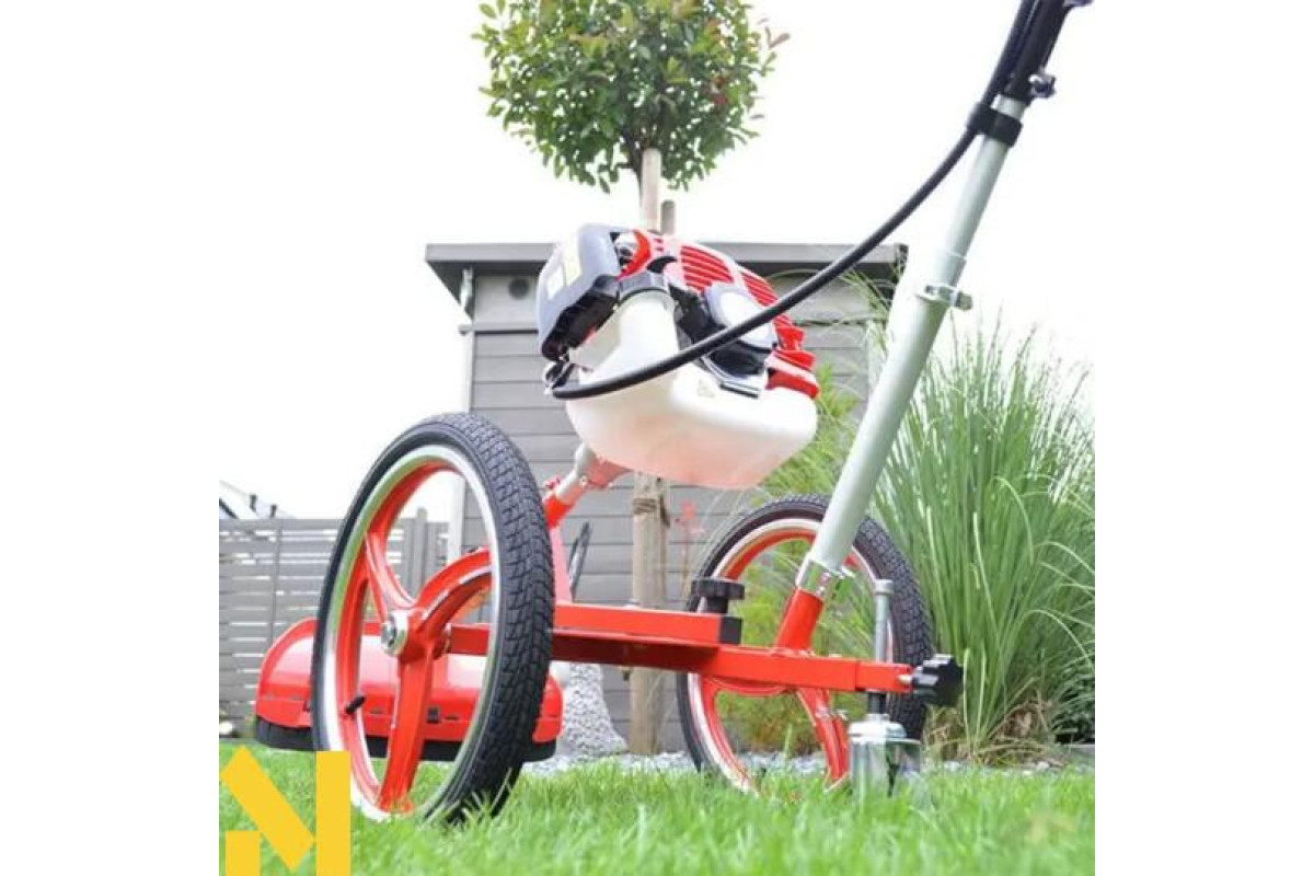 Привід із валом і тримерною головкою встановлено на шасі у вигляді поворотної системи.