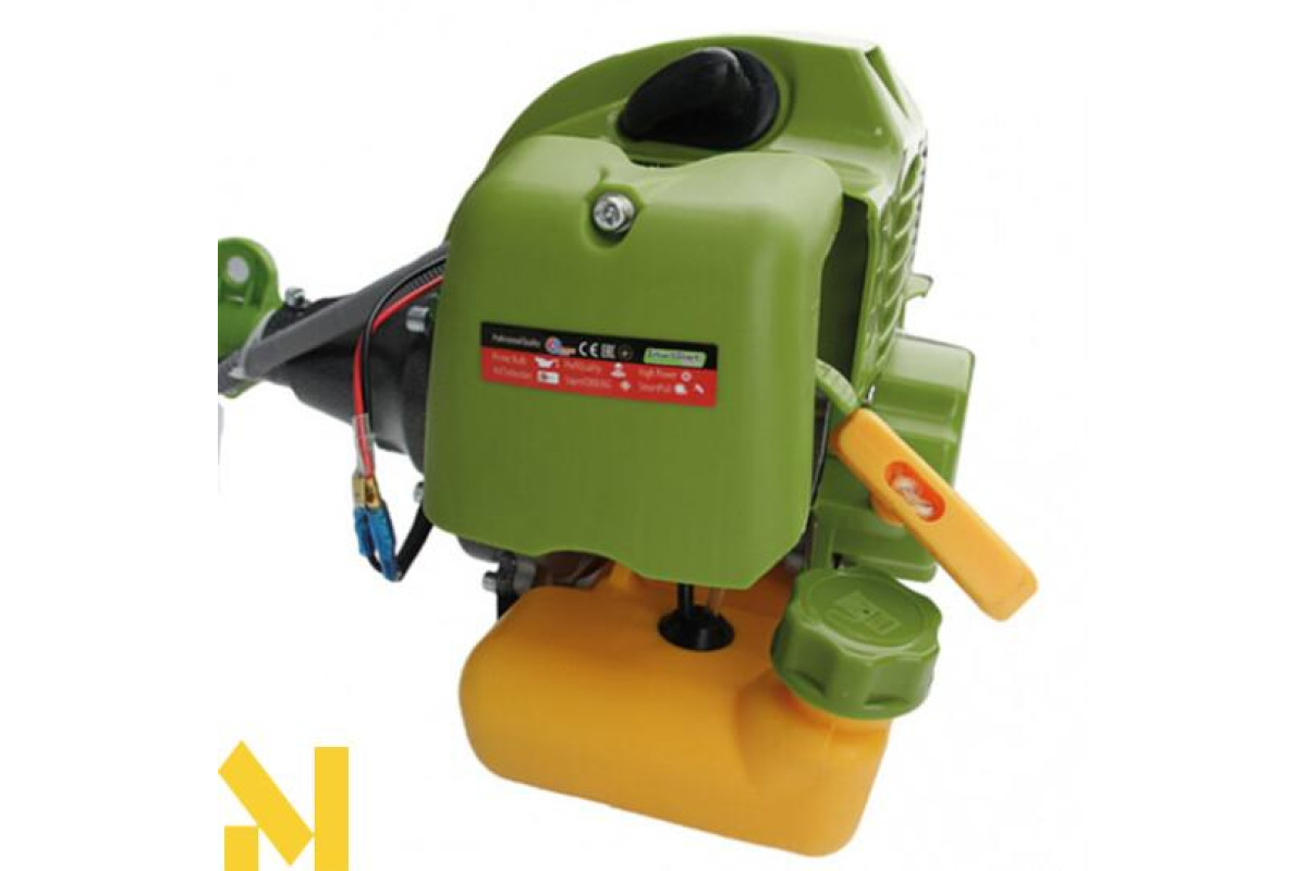 Якісний покіс зелені гарантований за рахунок потужного бензинового двигуна, який легко запускається і дозволяє працювати з косою на високих обертах. За рахунок можливості регулювання потужності вдається скоротити витрату палива. Для заправки використовується суміш бензину А-92 з маслом для двотактних двигунів.