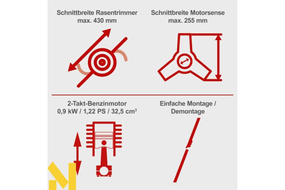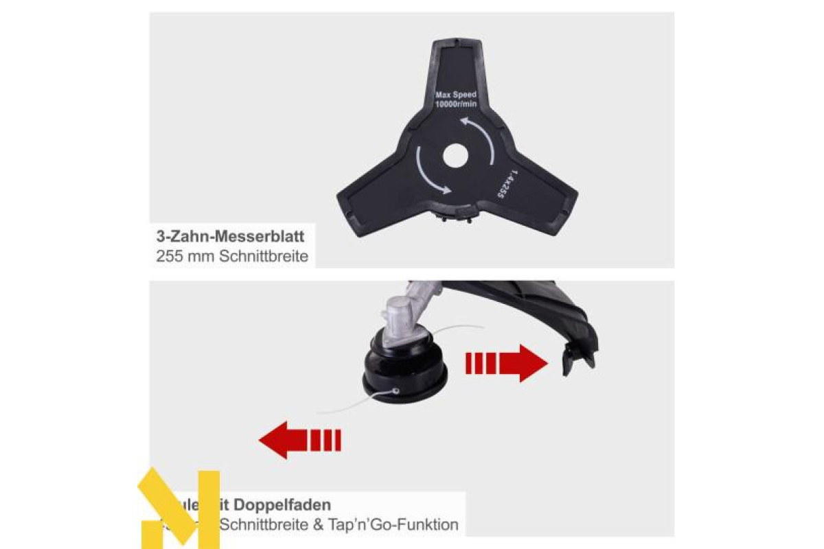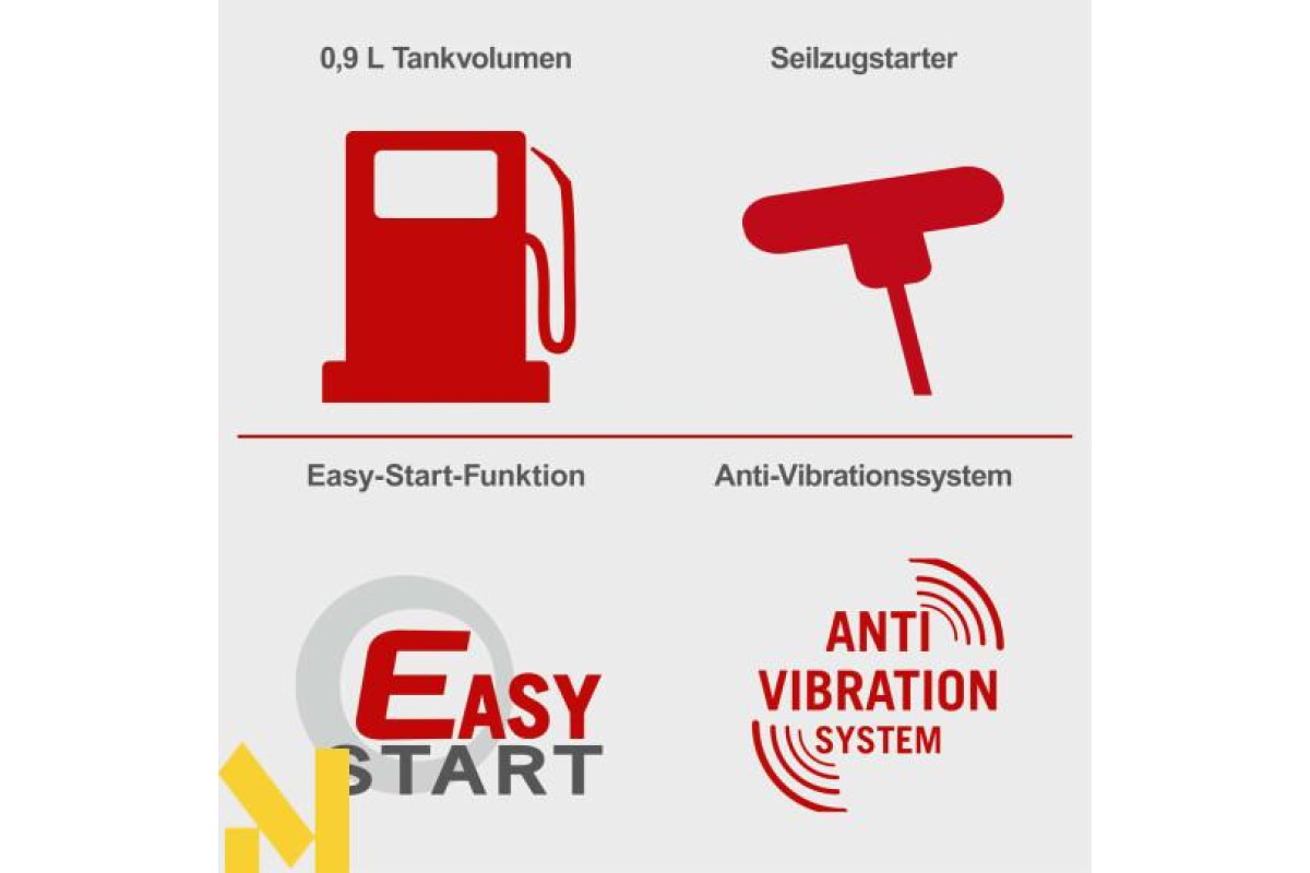 Функції | Легкий старт з ручним стартером Easy Start, подвійна котушка з ниткою Tap’n’Go, легке складання та розбирання |
