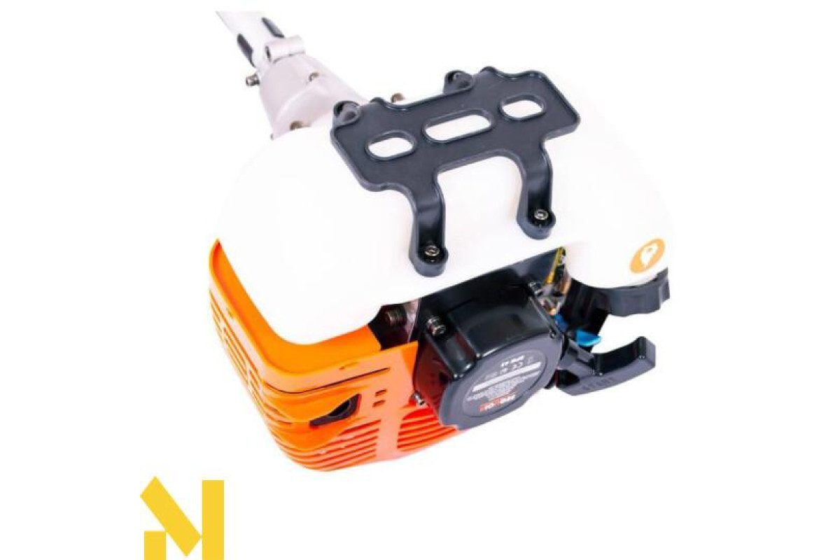 Довгу роботу коси забезпечує надійний двигун, що розвиває 8 000 об / хв, великий маховик, охолоджуючий двигун під час роботи і великий бак для паливної суміші.