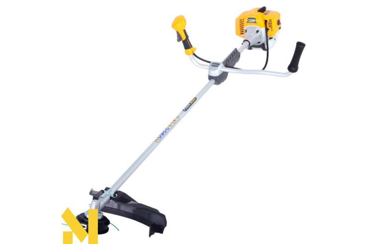 - Для обробки витких рослин і молодої порослі дерев в конструкцію входить трилопатевими ніж. Ріжуча головка напівавтомат. Самостійно регулює волосінь, для комфортного зрізу трави, легким ударом об землю кнопкою пуску.