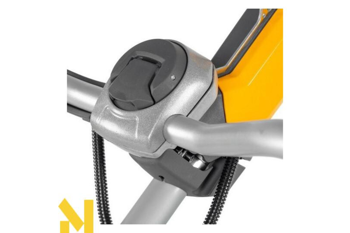 Мотокоса з двотактним бензиновим двигуном об'ємом 44,8 куб.см, прямим валом, посиленою опорою, велосипедною ручкою і шириною косіння 45 см. З новим цифровим дисплеєм.