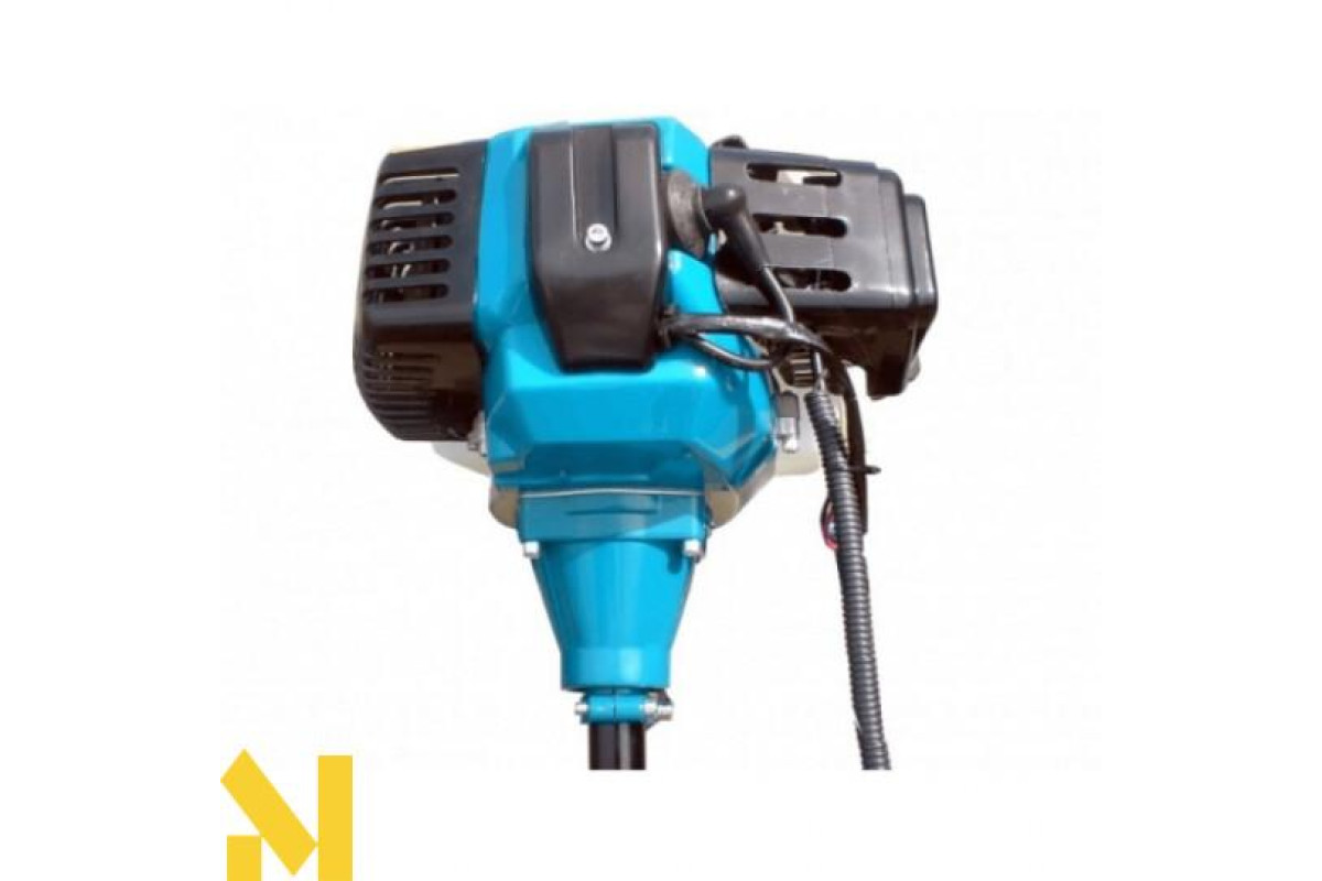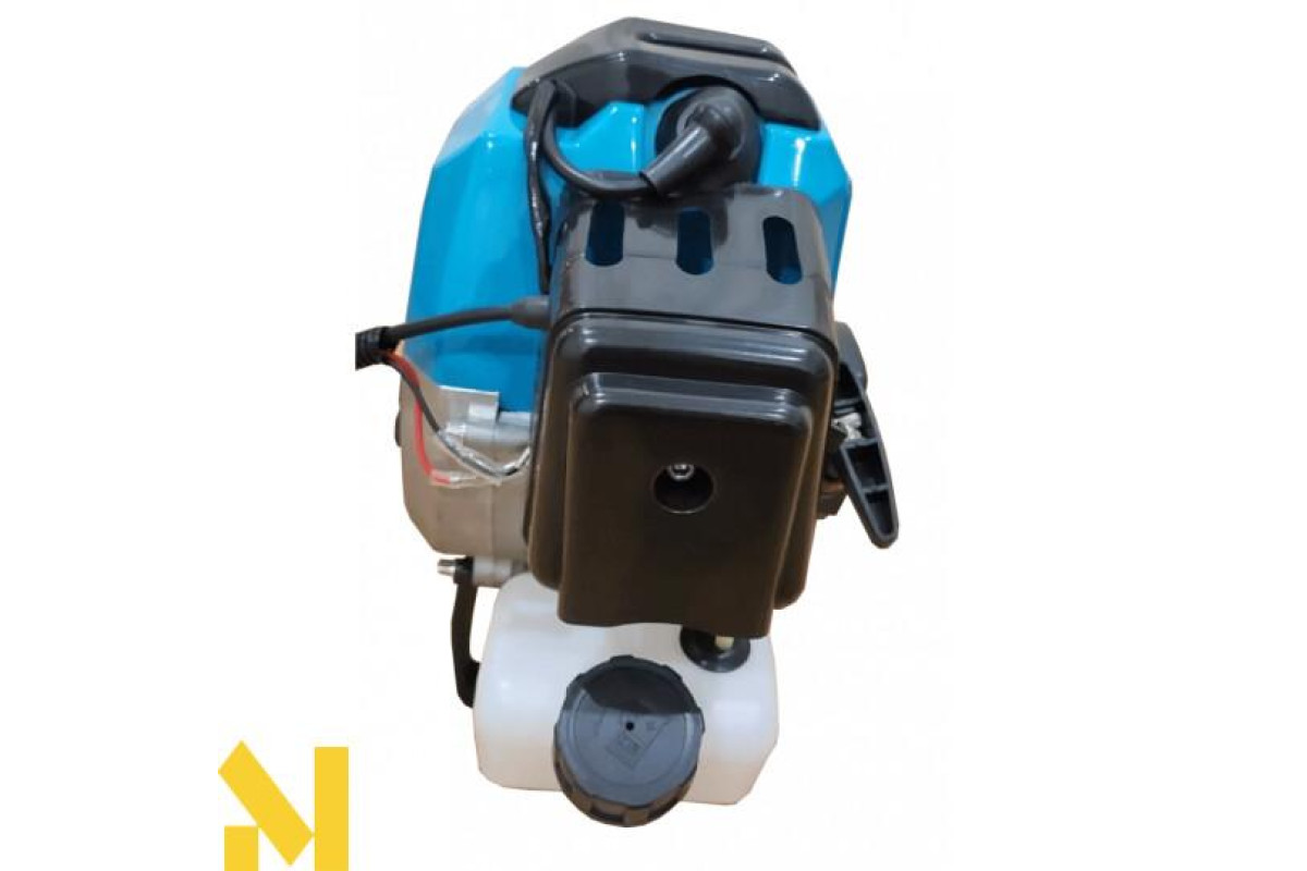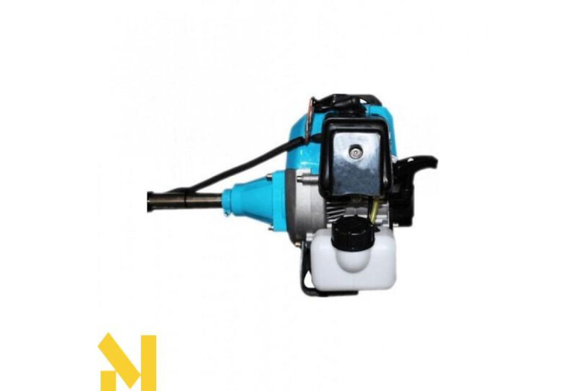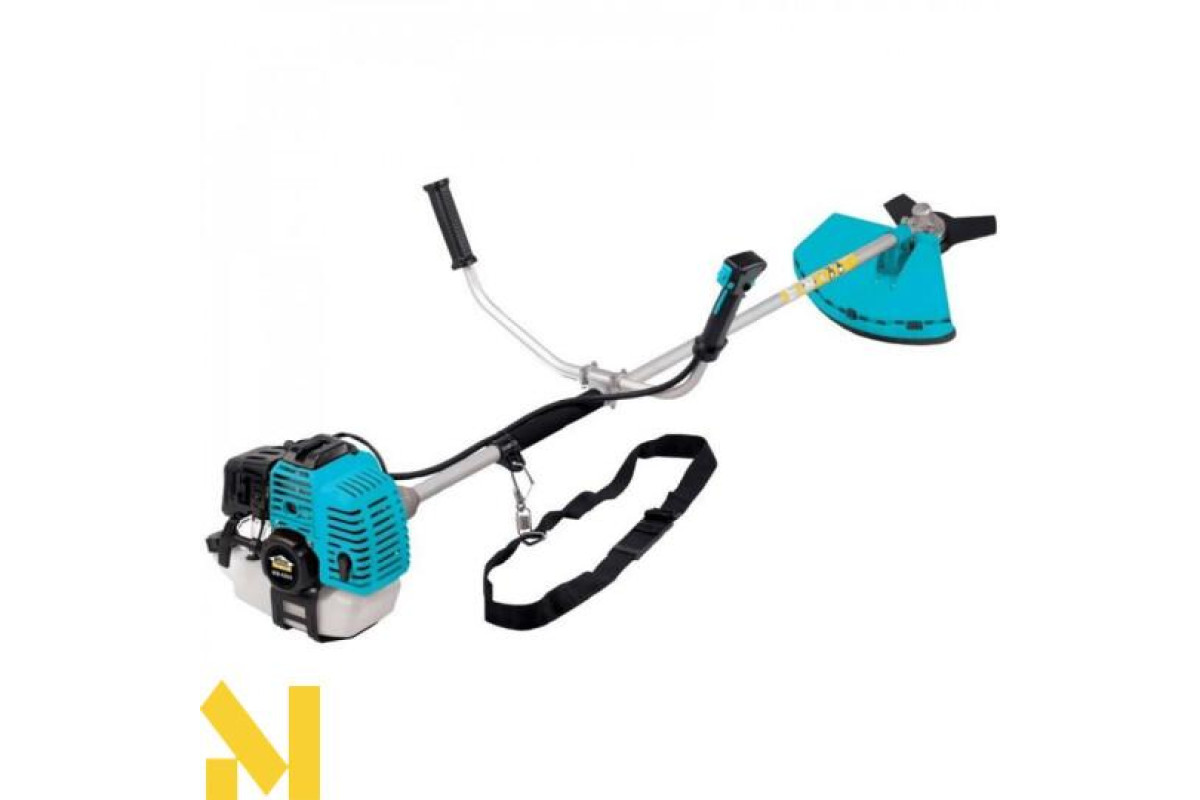 Мотокоса працює на базі двотактного двигуна внутрішнього згоряння, потужністю в 3000 Вт. Завдяки таким високим показникам, апарат здатний розвивати швидкість до 6000 оборотів за одну хвилину. Всі деталі двигуна виконані з якісних матеріалів, що дозволяє значно збільшити експлуатаційний ресурс і забезпечити високу якість косіння. Мотокоса має ніж та волосінь в якості ріжучих елементів. Котушку з волосінню рекомендується використовувати для скошування молодої трави. Пильний диск з легкістю впорається з високими бур'янами і невеликими чагарниками.