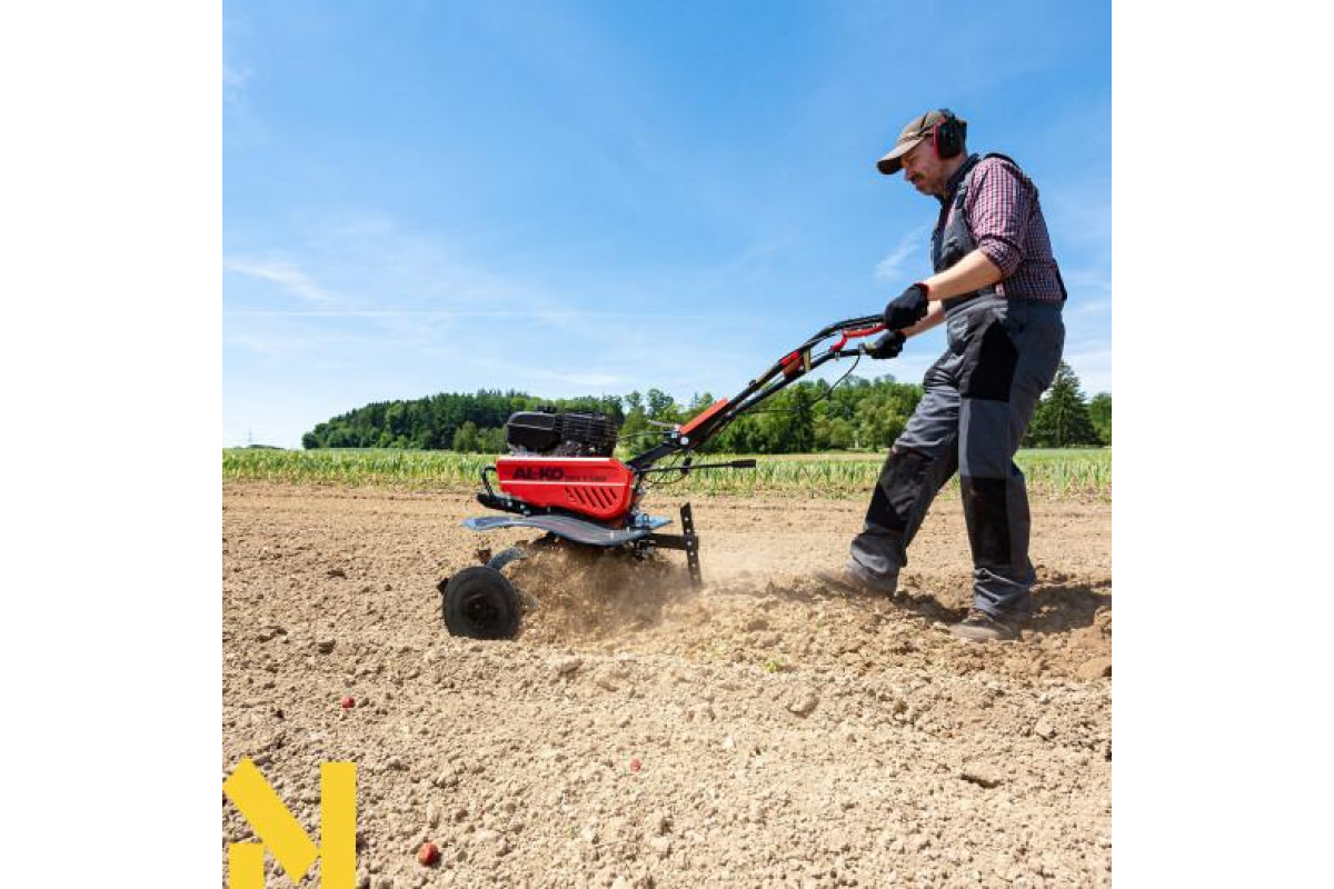 Ергономічна довга рукоятка, яку можна регулювати по горизонталі та висоті без використання інструментів, забезпечує особливу простоту використання. Якщо кермо зрушити убік, можна комфортно обробляти ділянку, не наступаючи на вже оброблений і, таким чином, розпушений ґрунт.