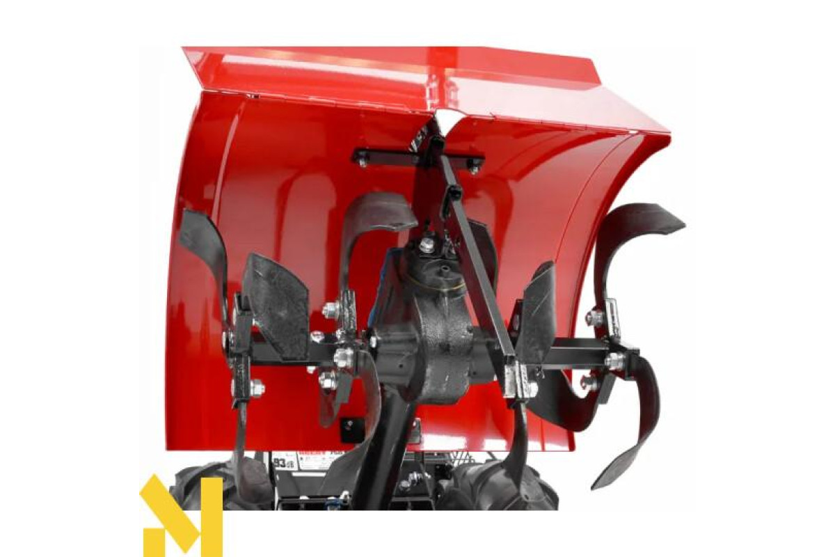 12 культивують ножів спеціальної форми діаметром 34 см з міцної сталі, які ідеально подрібнюють грунт;