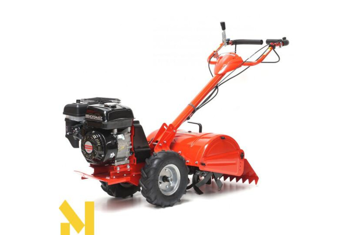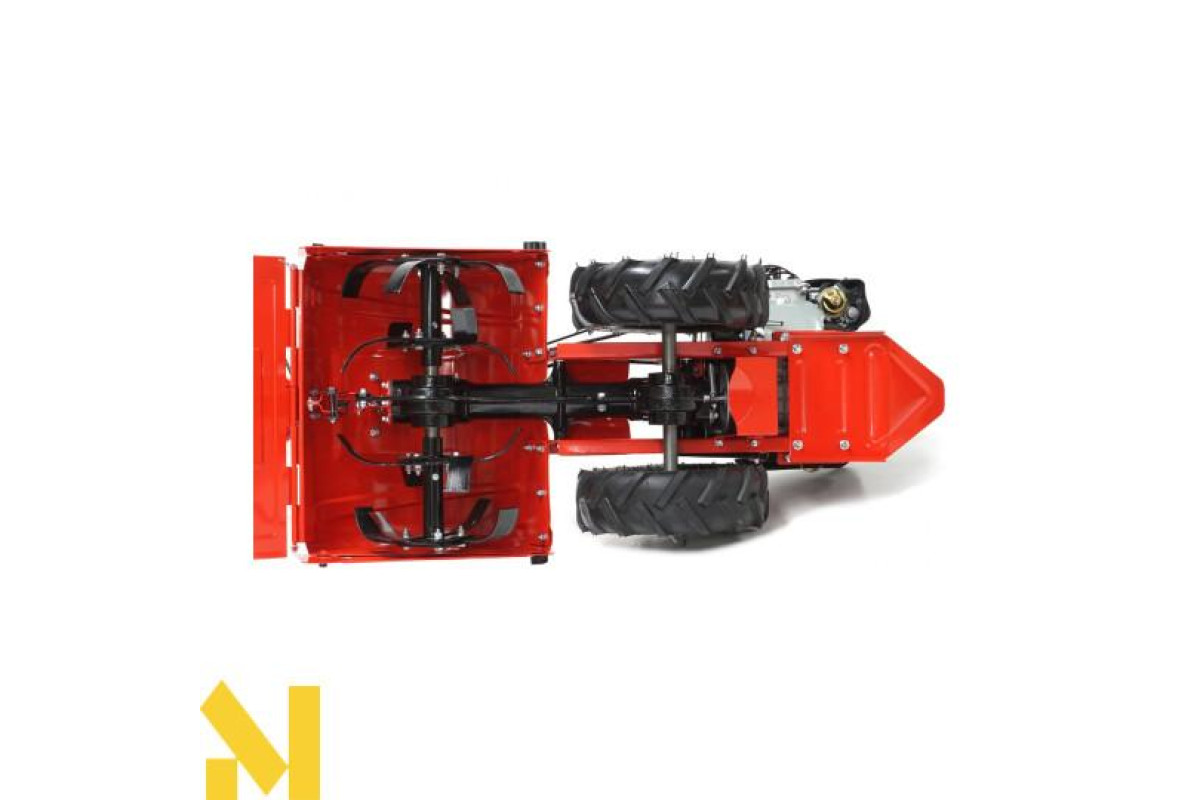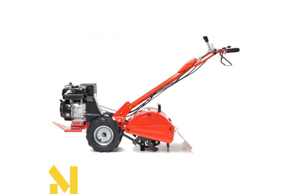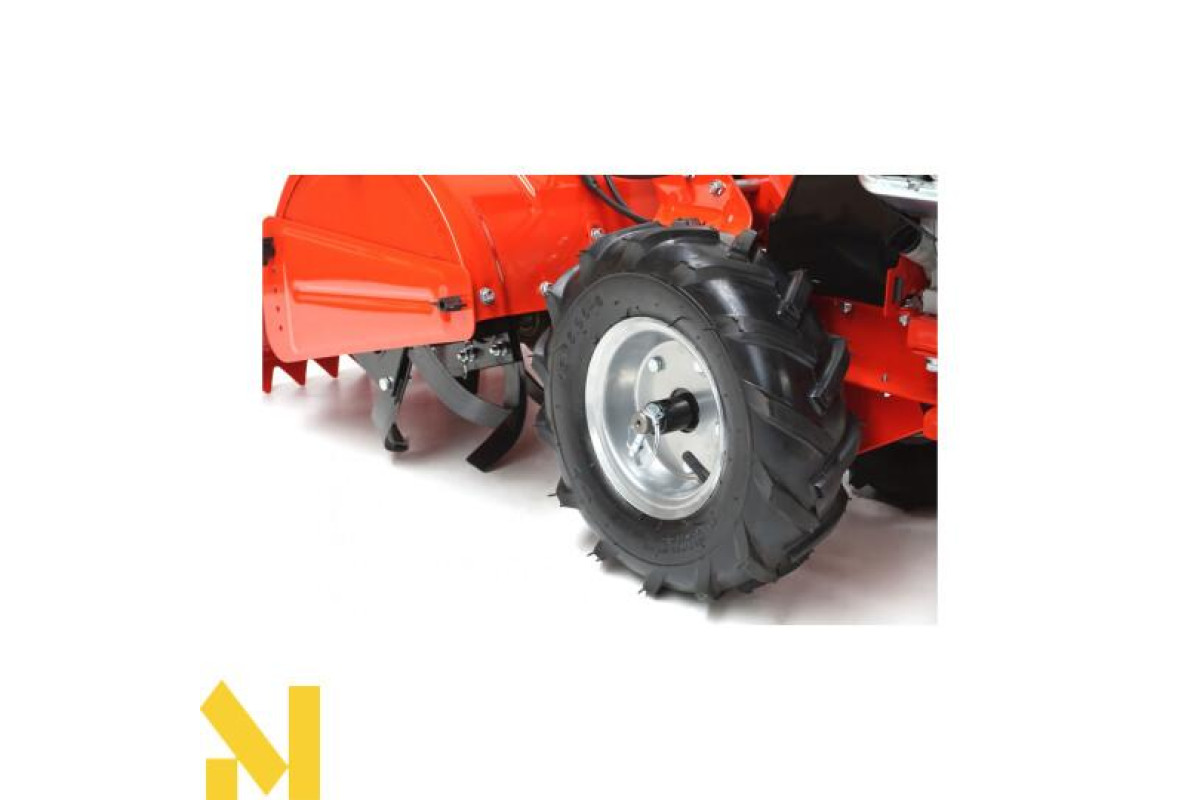 2 великих гумових приводних колеса полегшують керування машиною і забезпечують надійну керованість, яка не втомлює оператора. У порівнянні з традиційними культиваторами з роторами спереду, ця модель пропонує значно краще зчеплення з ґрунтом, з відмінною амортизацією зусилля, що передається робочими лопатями. Можливість працювати заднім ходом виключає витоптування і полегшує витягування машини в разі застрягання.