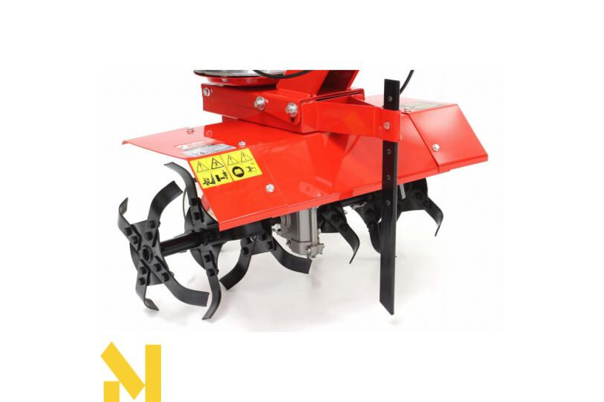 Завдяки розділеним робочим секціям ми можемо встановити 4 або 6 зірок та досягти різної робочої ширини культиватора (41 або 56 см). Нижній робочий механізм захищений додатковим сталевим щитом.