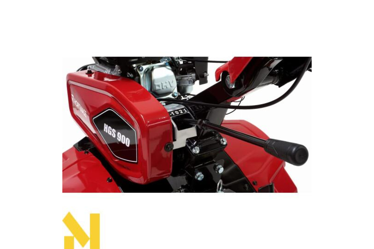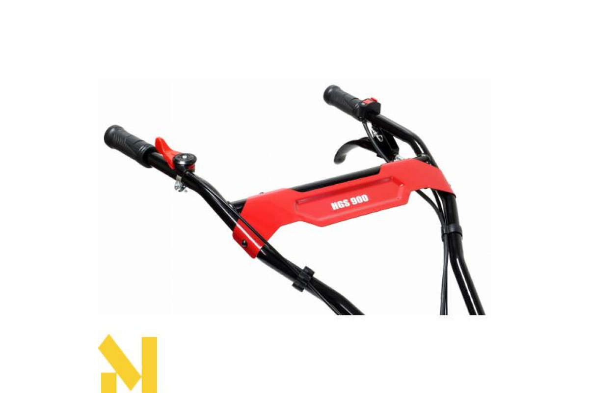 Модель HGS 900 оснащена чавунною гільзою циліндра, масляним повітряним фільтром, регульованою ручкою та переднім транспортним/подавльним колесом. Комплект включає комплект гумових шин, ключ для свічок запалювання, інструкцію з експлуатації та два літри оливи для першої заливки двигуна та коробки передач, що дозволяє вам розпочати роботу одразу після покупки.