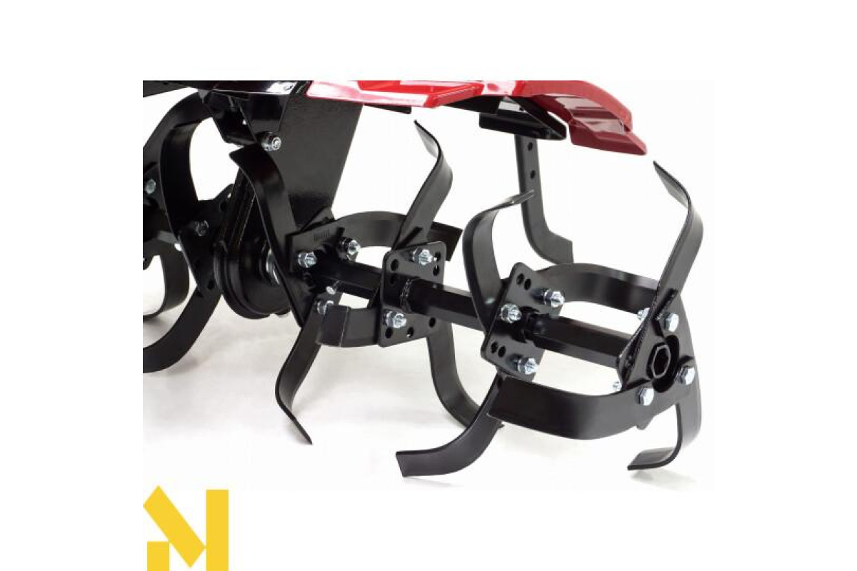 Ножі виготовлені зі зносостійкої сталі, а зовнішні зірки спрямовані «всередину», щоб зменшити шар ґрунту, що покриває рослини, та сприяти рівномірному зрізанню оброблюваної поверхні.