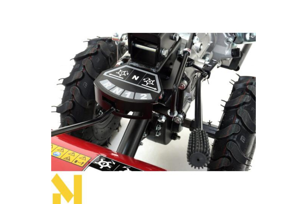 Чавунна коробка передач дозволяє працювати на 2 передачах переднього ходу і 1 передачі заднього ходу, крім того, двигун встановлений безпосередньо в коробці передач.