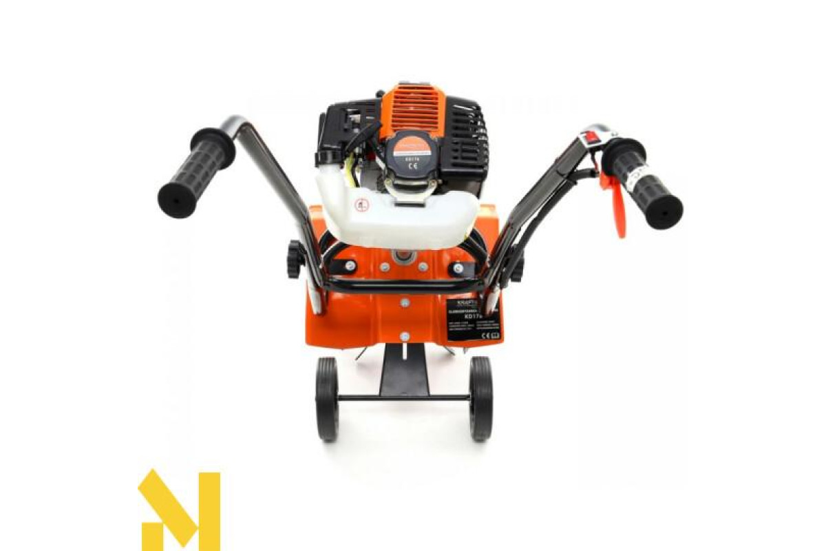 Бензиновий культиватор KD176 оснащений двигуном потужністю 3,8 кВт/5,2 л.с. Частина робоча має набір ріжучих ножів, які автоматично вгризаються у ґрунт.