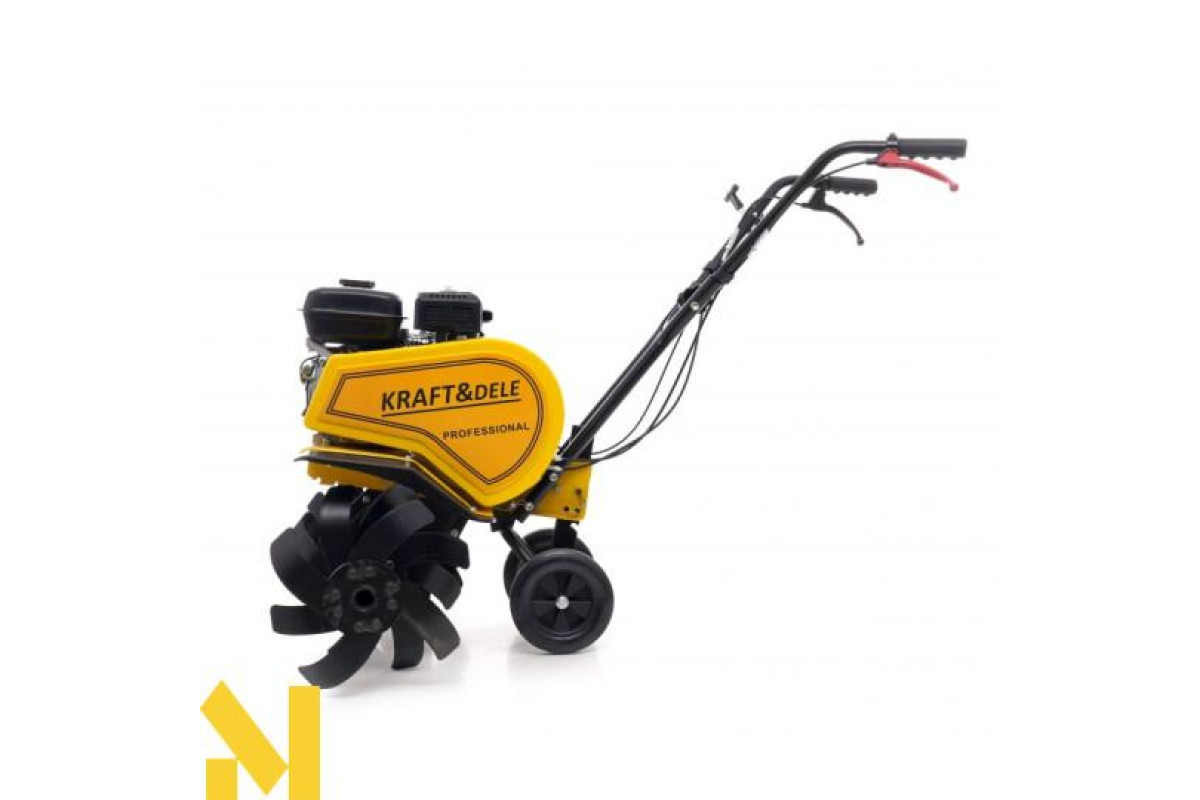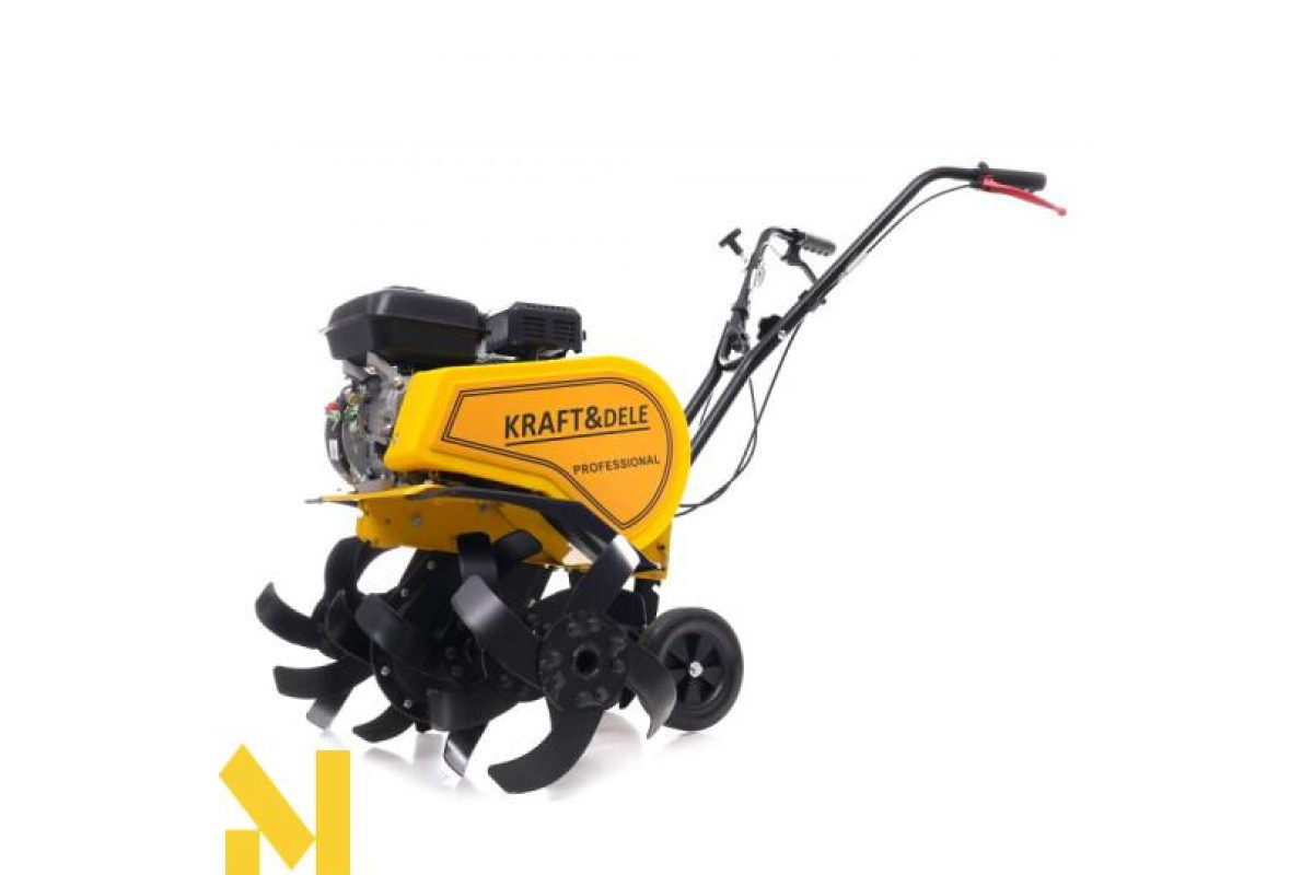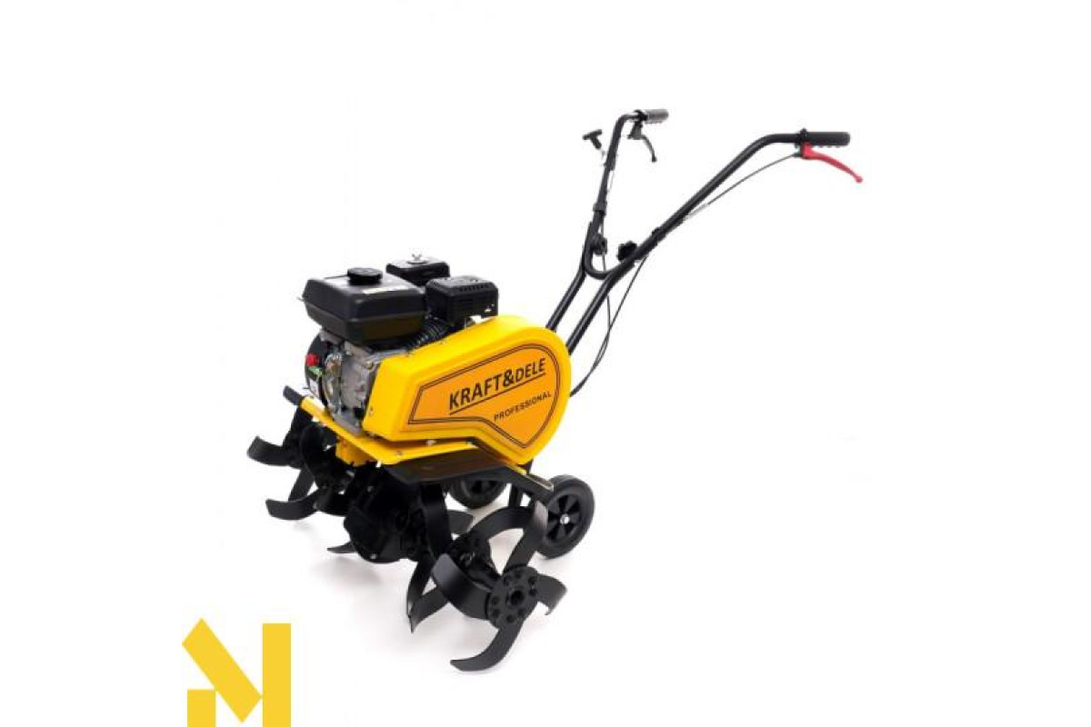 Бензиновий культиватор KD5163 оснащений двигуном потужністю 6,5 к.с. Робоча частина має набір ріжучих ножів, які автоматично вгризаються у ґрунт.