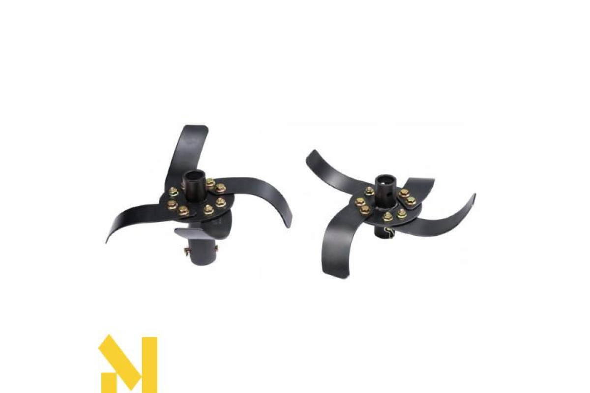 У комплекті ви отримуєте 6 ножів. Леза кріпляться за допомогою штифтів, завдяки цьому рішенню ми можемо поставити 1, 2 або 3 пари лез, які відповідають роботі на 300мм, 500мм і 850мм.