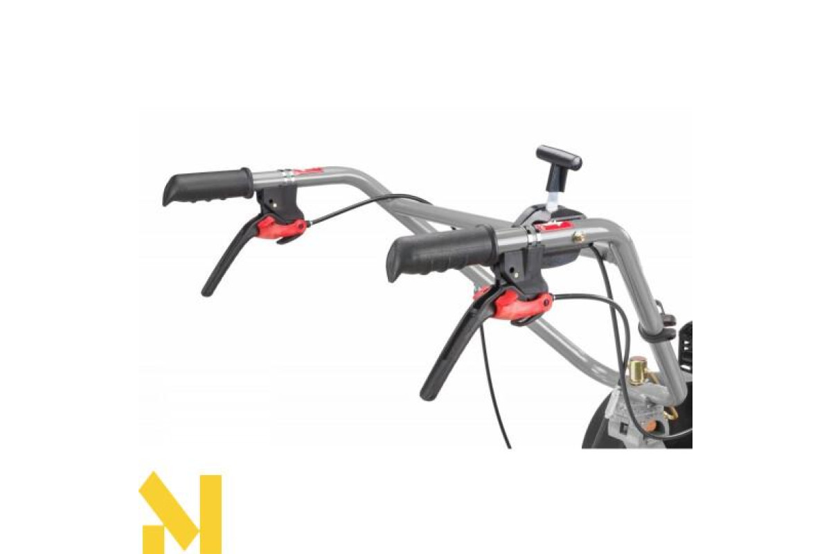 Ергономічні ручки полегшують керування косаркою, відстань між ручками оптимізована для забезпечення комфорту під час роботи. На рукоятках є ручки для перемикання пристрою вперед і назад, а також регулятор дросельної заслінки для регулювання двигуна. Рукоятку можна легко відрегулювати без інструментів у двох площинах: вбік і вгору