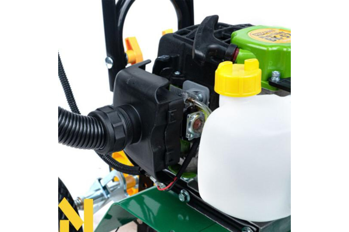 Завдяки тому, що пристрій має двотактний високопотужний двигун, розбірну фрезу та комфортну панель управління, виконувати розпушування землі стане простіше простого. Як паливо в апараті застосовується суміш масла та бензину, а його запуск виконується за допомогою спеціального ручного стартера. Нижче ми перерахували всі особливості культиватора: