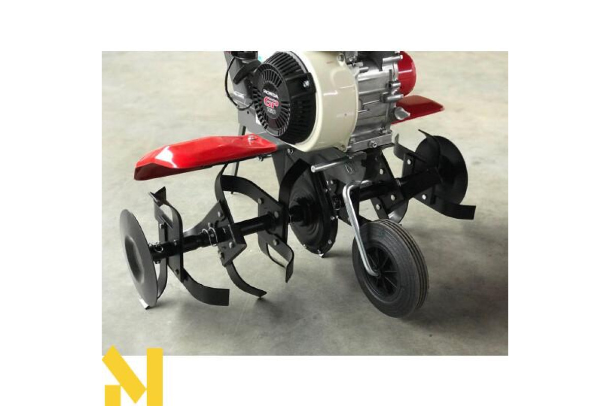 У представленому культиватор 6 розбірних кованих фрез (D = 32 см). Завдяки цій особливості користувач з легкістю може зменшувати робочу ширину, максимально адаптуючи роботу в міжряддях. З двох сторін встановлені спеціальні сталеві диски - кромкорізи. Їх основним призначенням є захист рослин в процесі роботи.
