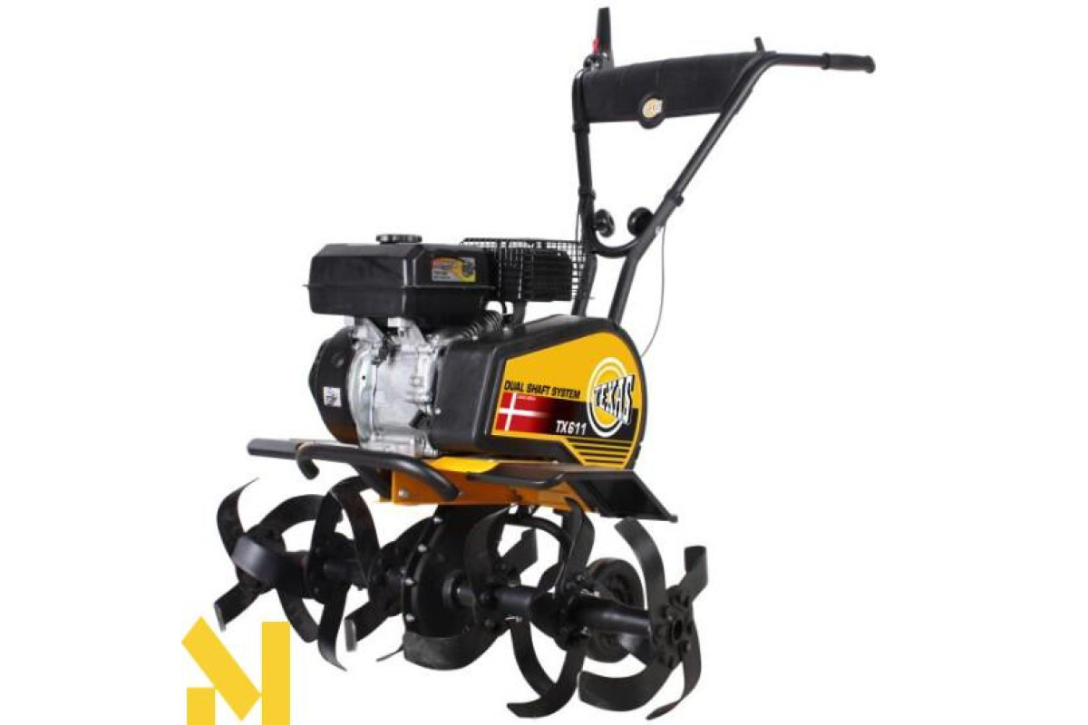 Бензиновий культиватор Texas TX611TG Dual-Shaft (90061196) - надійний помічник в сільському господарстві. Його відмінність, то що вигідно виділяє його на тлі інших - це комфортна панель управління на кермі завдяки якій здійснюється легке перемикання передач, що важливо при великих обсягах робіт на земельній ділянці. Також кермо оснащений невеликим відділенням для зручного зберігання рукавичок і дрібного інструменту. Даний мотокультиватор призначений для дачних ділянок, де ним з легкістю можна виробляти перекопування, оранку ґрунту з метою її аерації і знищення бур'янів.