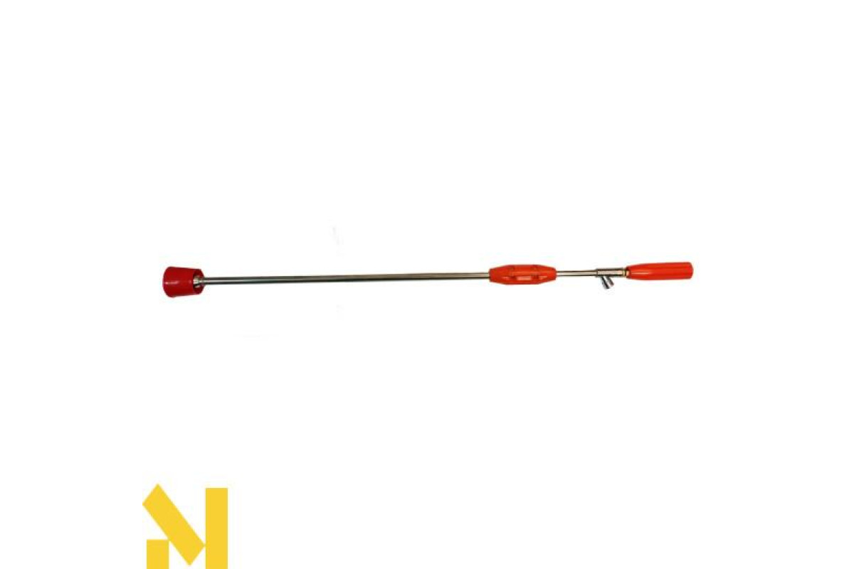 Обприскувач забезпечений 25-метровим шлангом і штангою з регулюванням потоку рідини.