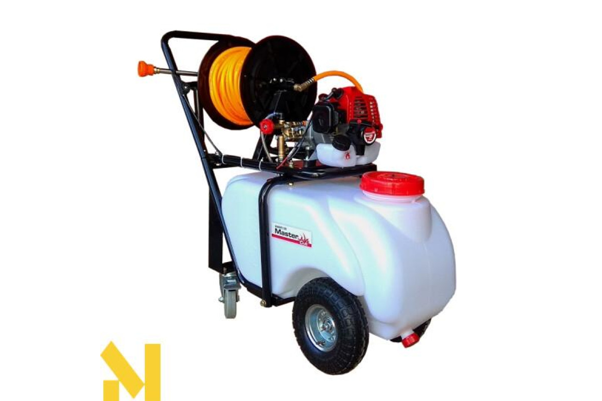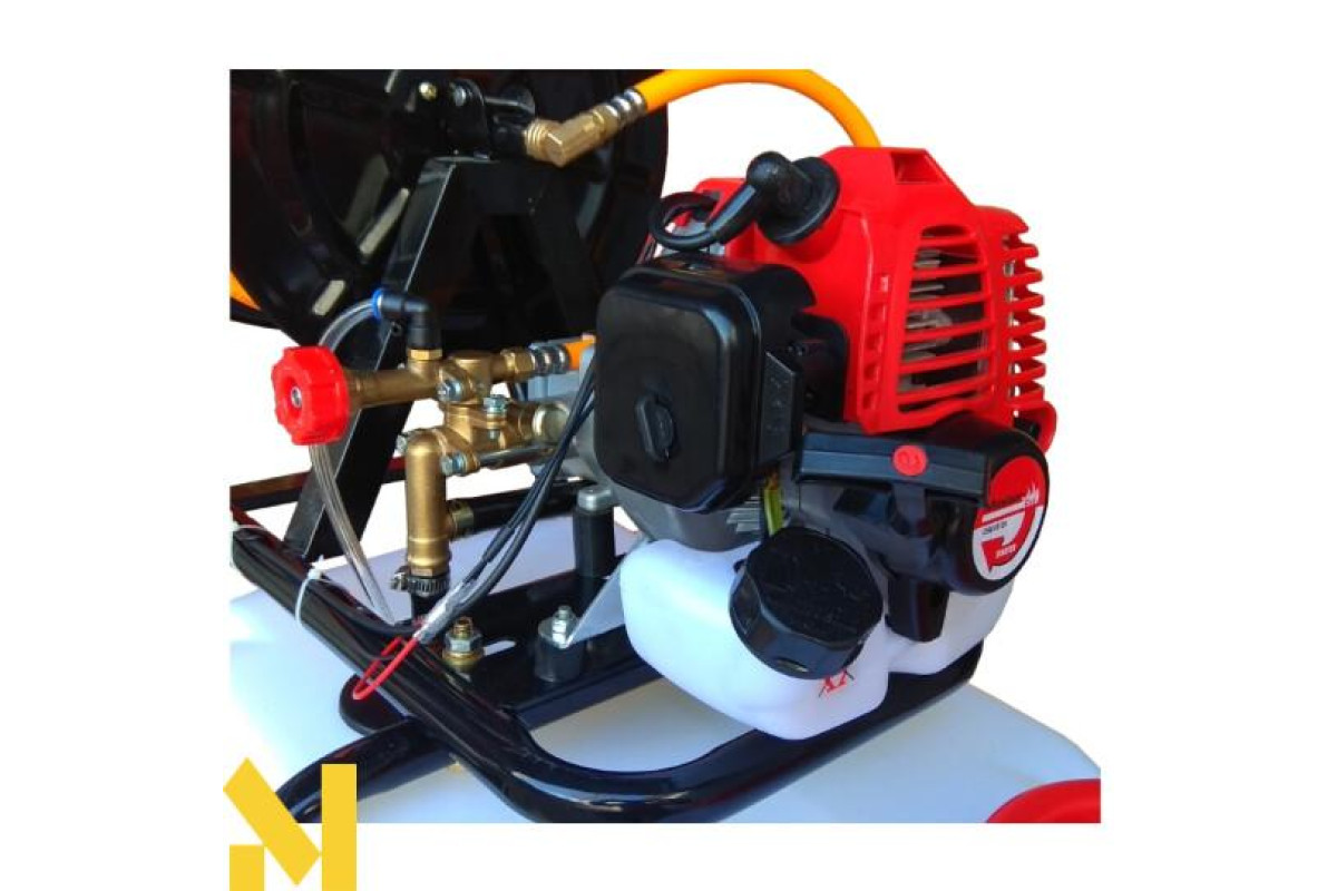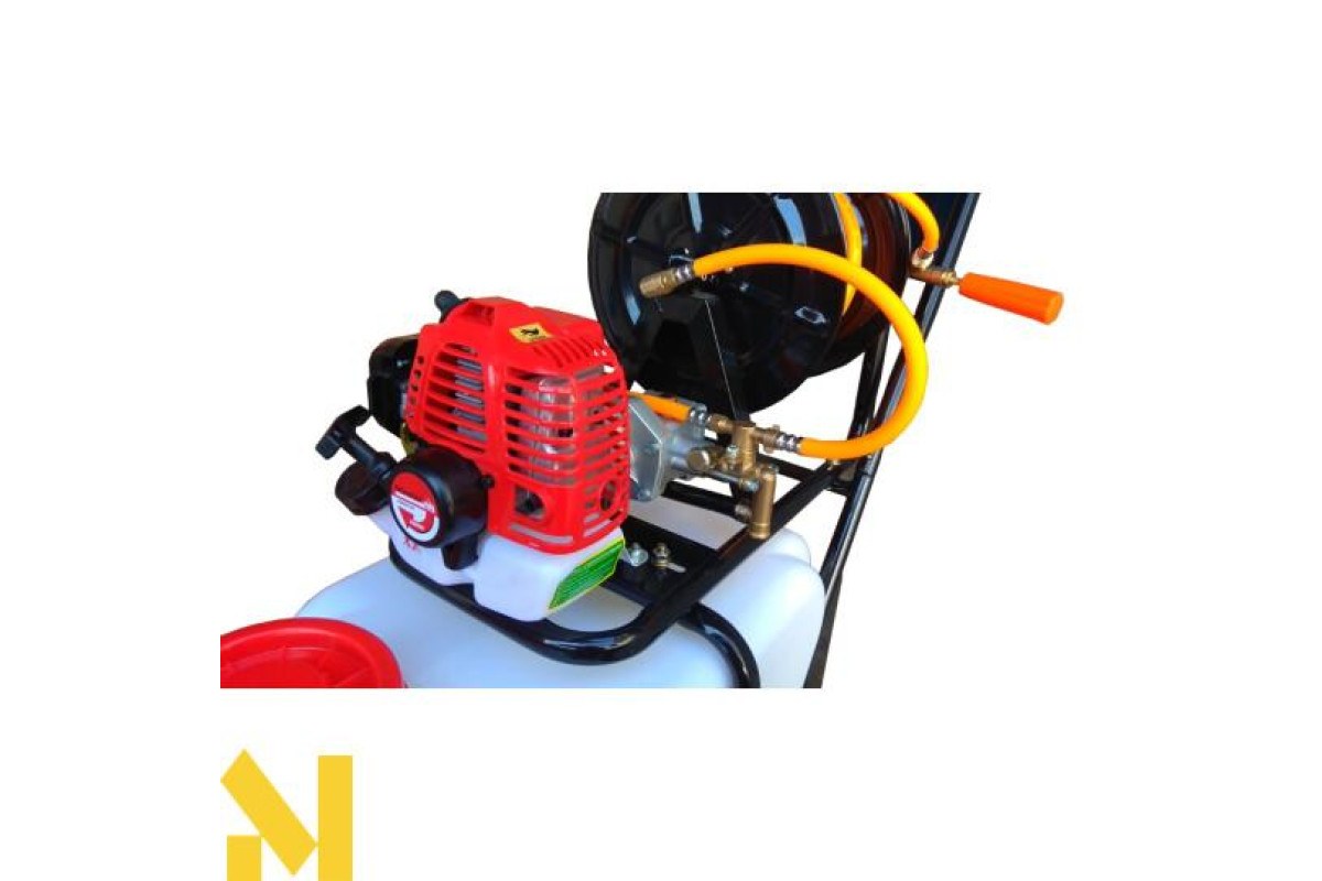 Бак обприскувача ємністю 60 літрів. Поршневий насос з латунним корпусом, тиск до 40 бар.